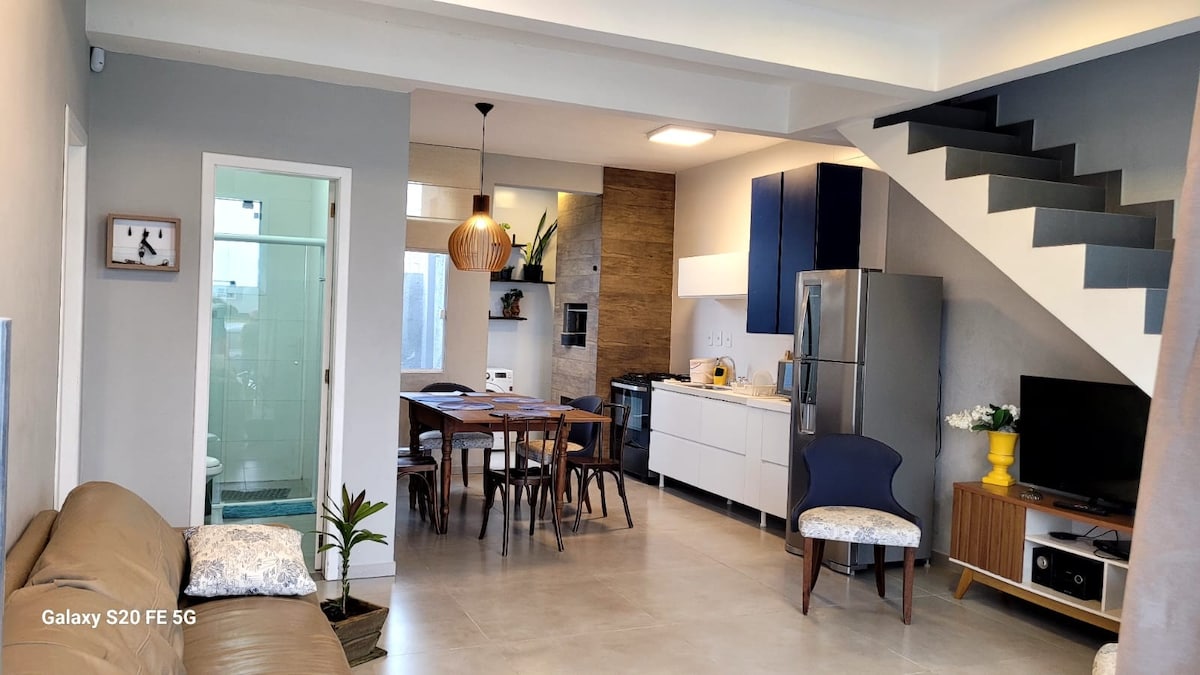 Lakás 250 méterre a strandtól, közel az „Eu amo Tramandaí”-hoz! Közel a piacokhoz, a gyógyszertárhoz és 700 méterre a belvárostól. Ideális pároknak vagy kis családoknak. Tökéletes a pihenéshez! Fedett garázs! 1 hálószobája van légkondicionálóval, mennyezeti ventilátorral, queen méretű ággyal és egyszemélyes ággyal. Szoba kanapéval, TV-vel és mennyezeti ventilátorral. Teljes konyha új készülékekkel, mosoda mosógéppel.