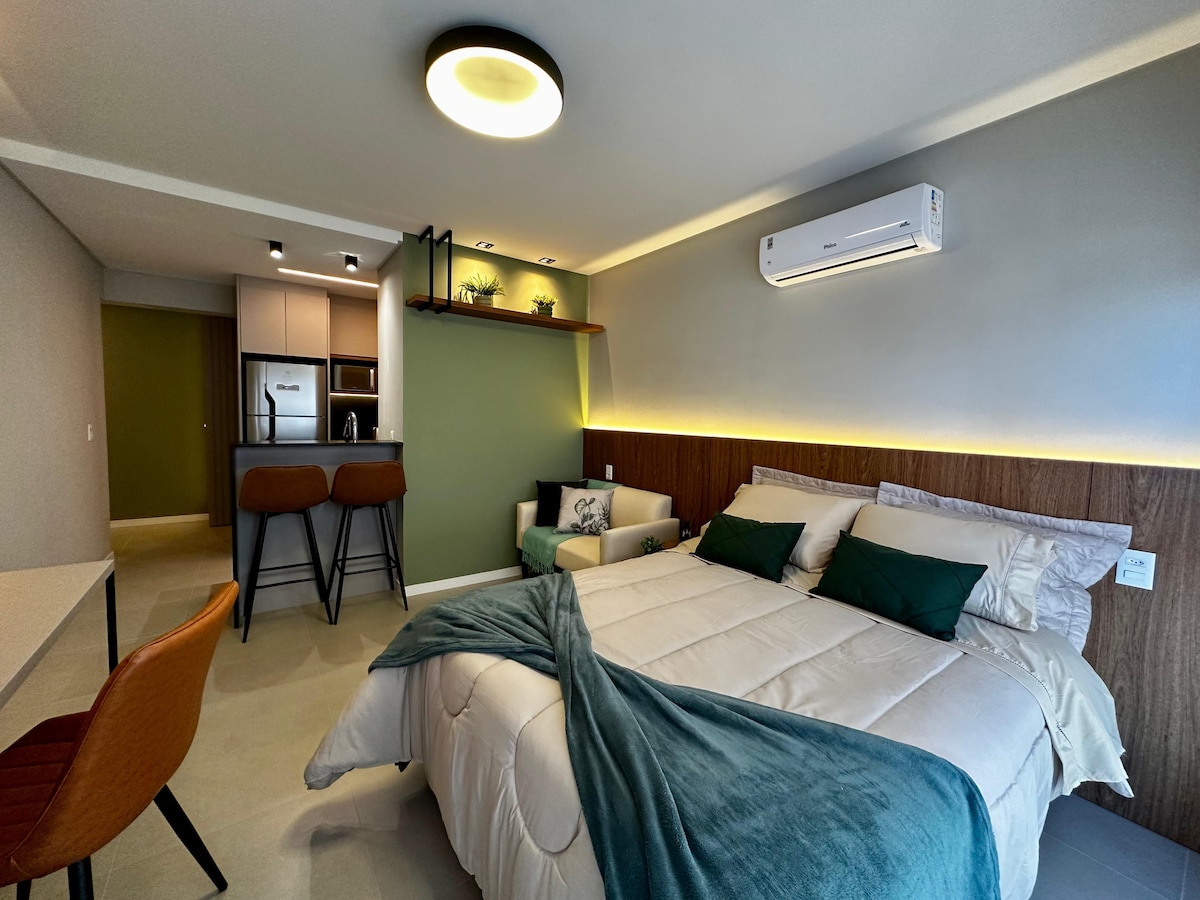 Loft em Condomínio luxuoso - sauna, lago, jacuzzi