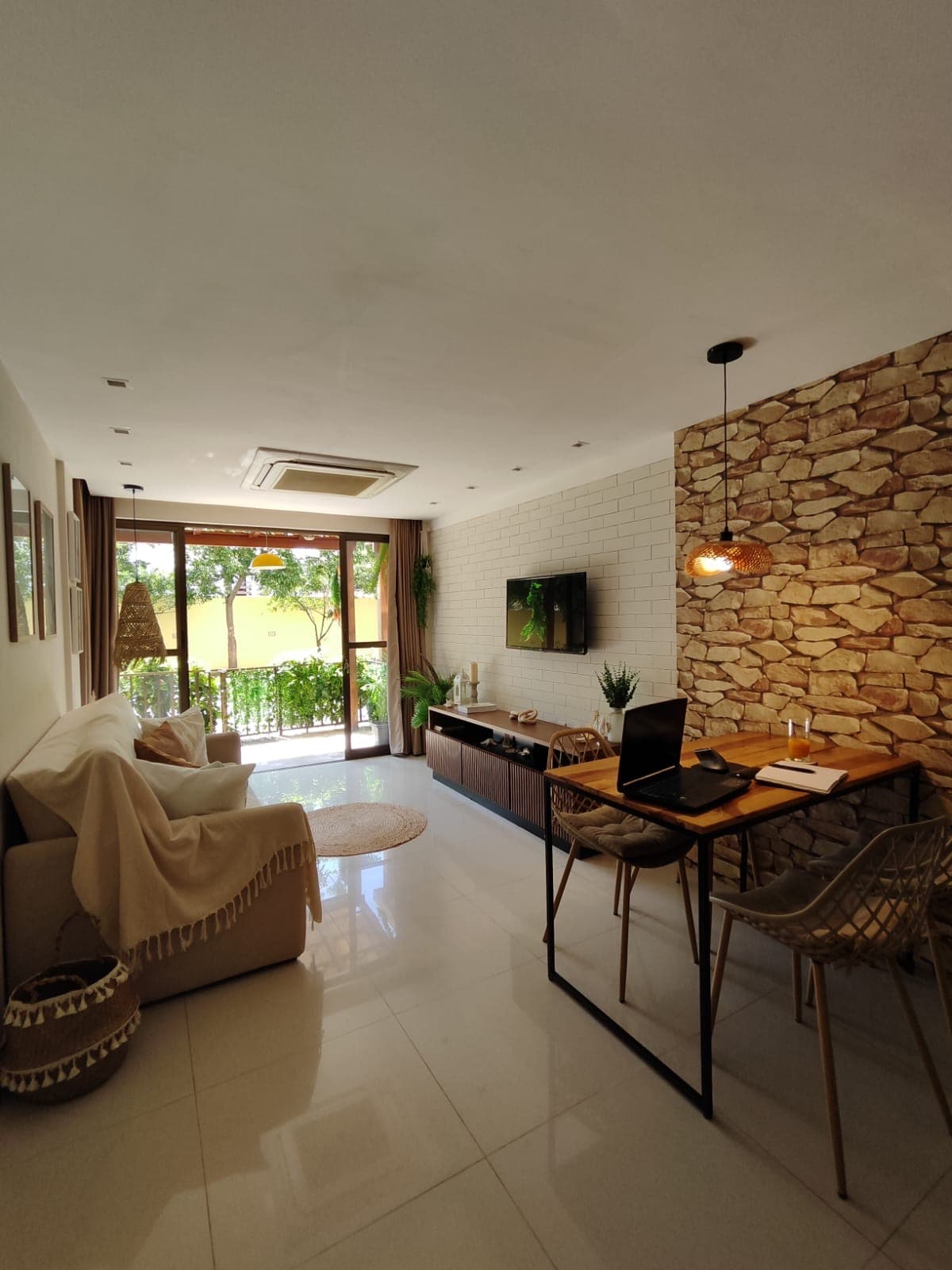 “NortDestino: Your destination in the Northeast.” Renovated apartment (A-004) in the heart of Guarajuba. A unique and peaceful place, decorated to create a sensory experience that reflects the Mediterranean/boho style. We are a family and want to provide our guests with a visual and emotional experience of calm that invites them to disconnect and enjoy the space. On the lakefront with a large green area and infrastructure. In the best location, close to the best beaches, restaurants, etc.