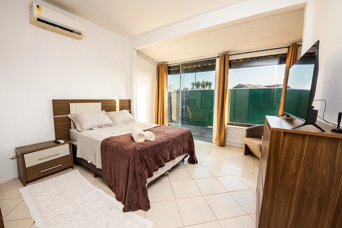 Egy kis kiruccanás az Ibiraquera bárjában, amely egy ház hátsó részén található, saját előszobával és bekerített privát területtel. A tenger mellett található, és nagyszerű lehetőség azoknak a pároknak, akik szeretnének néhány napot pihenni. A stúdióban minden megtalálható, amire egy párnak szüksége lehet, hogy jól elférjen: felszerelt konyha, légkondicionáló, queen méretű ágy, fürdőkád. A dekorációt a bájos thaiföldiára inspirálta.