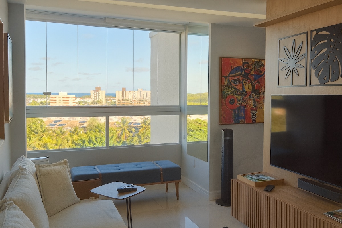 Van egy finoman berendezett, 2 hálószobás lakás egy saját fürdőszobával, osztott légkondicionálóval minden egyénileg szabályozható környezetben, kilátással a tengerre. Kényelmesen elfér benne 6 fő (2 franciaágy + 1 kanapéágy). Élvezd az épület kényelmi szolgáltatásait, például a TENGERRE NÉZŐ csodálatos tetőtéri medencét, a teljesen légkondicionált edzőtermet spinningszobával, a 2 coworking szobát és a játékkönyvtárat. Vegyél részt Bahia varázsában, és kezdj el felejthetetlen emlékeket teremteni!