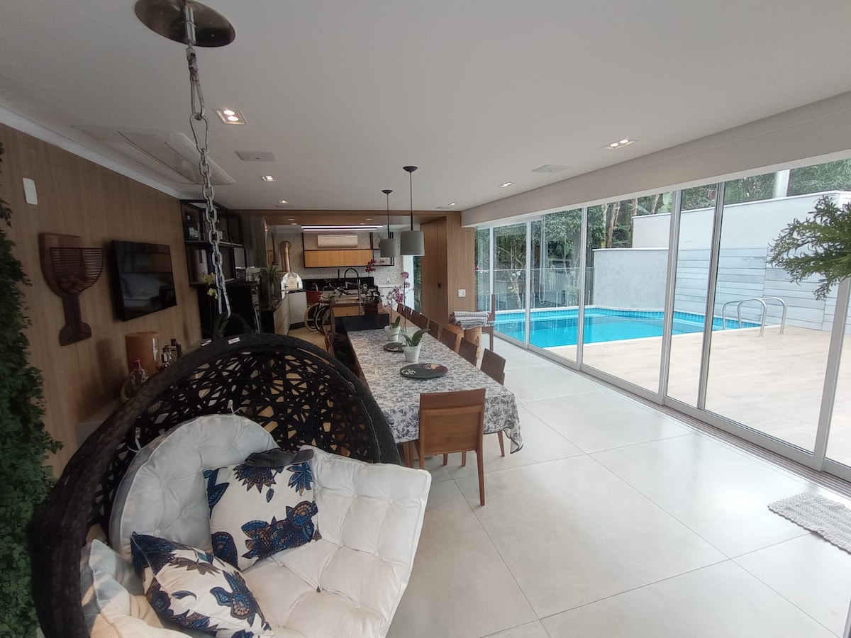 Ház zárt közösségben Barra do Sahy 400m2, 4 lakosztállyal, 1 fürdőszobával és 8 személy kényelmes elszállásolására alkalmas kapacitással. A ház nagyszerű állapotban van, rendkívül bájos, tágas és jól berendezett, fantasztikus kilátással a strandra vezető összes szobára és hálószobára. Ez egy jól szellőző és hűvös ház, mert magas mennyezettel és nagy üvegablakokkal rendelkezik az egész környezet körül. Terasz medencével, grillezővel és szabadtéri asztallal. 24 órás biztonság. Nagy sebességű száloptikás wifi.