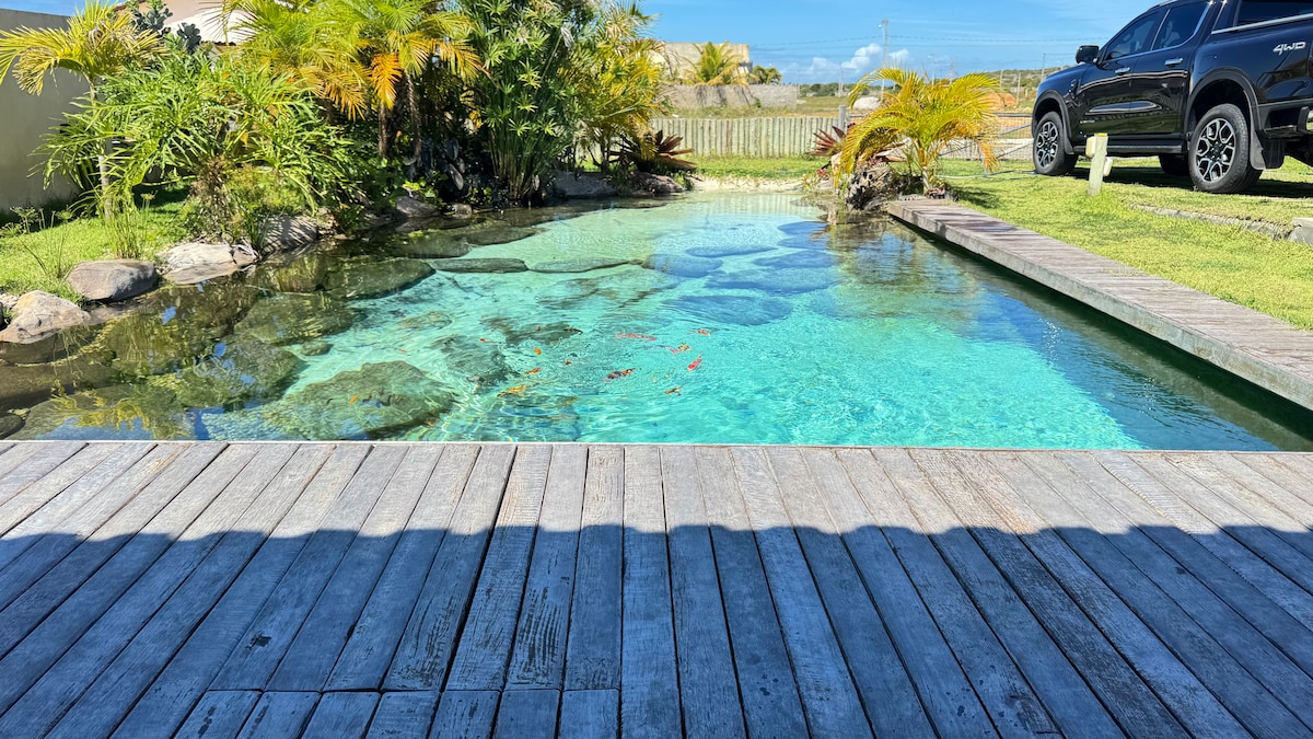 VIGYÁZAT : Legfeljebb hat felnőtt és két gyermek befogadására alkalmas. Három szoba van légkondicionálóval, két lakosztály, Wi-Fi , ínyenc terület, grillező és bluetooth-hang, nappali TV-vel , teljes konyha, mikrohullámú sütő, gélvíz és kávéfőző. Itt egy otthonos, csendes és biztonságos hely, amely tökéletes a pihenéshez, a medencében való pihenéshez vagy a tengerparton a családoddal töltött különleges pillanatokban. Gyertek, és tapasztaljátok meg a paradicsom egy darabját a megérdemelt biztonságban és nyugalomban.