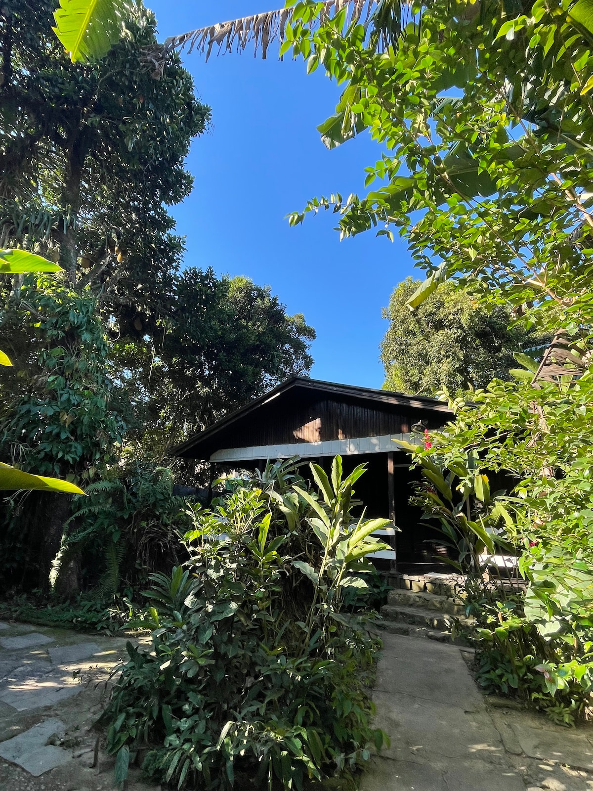 No meio da floresta, entre os pássaros, esquilos e macacos se encontra a Casa do Beija-Flor. Privacidade absoluta, a entrada e todos os espaços descritos são do uso privado para quem se hospeda aqui! tem um amplo deck externo com bancos, mesa e rede para descansar e contemplar as maravilhas da natureza. Imagine acordar com o som da cachoeira, respirando o ar fresco do lugar. Na chegada temos uma trilha curta com muito verde. Venha descansar no meio da natureza típica do Brasil.