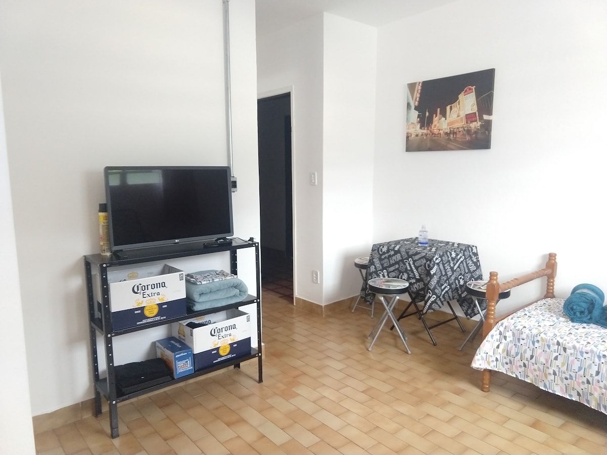 Kitnet in Caraguatatuba, located on the beach street, Praia do Camaroeiro. Nagyszerű elhelyezkedés. A belváros és Martin de Sá (a legdivatosabb a városban) között. A tengerparti utcában. Szállás legfeljebb 3 főnek kényelmesen és kényelmesen. Közel mindenhez: strand, rendezvényterem, éttermek, bárok, fagyizók. Sétálva szinte bármit megtehetsz. Megjegyzés: Hálószoba/nappali, fürdőszoba, konyha és kiszolgáló terület. Legfeljebb 3 személy számára. Nincs tűzhely, nincsenek fazekak és serpenyők. Nemdohányzó.