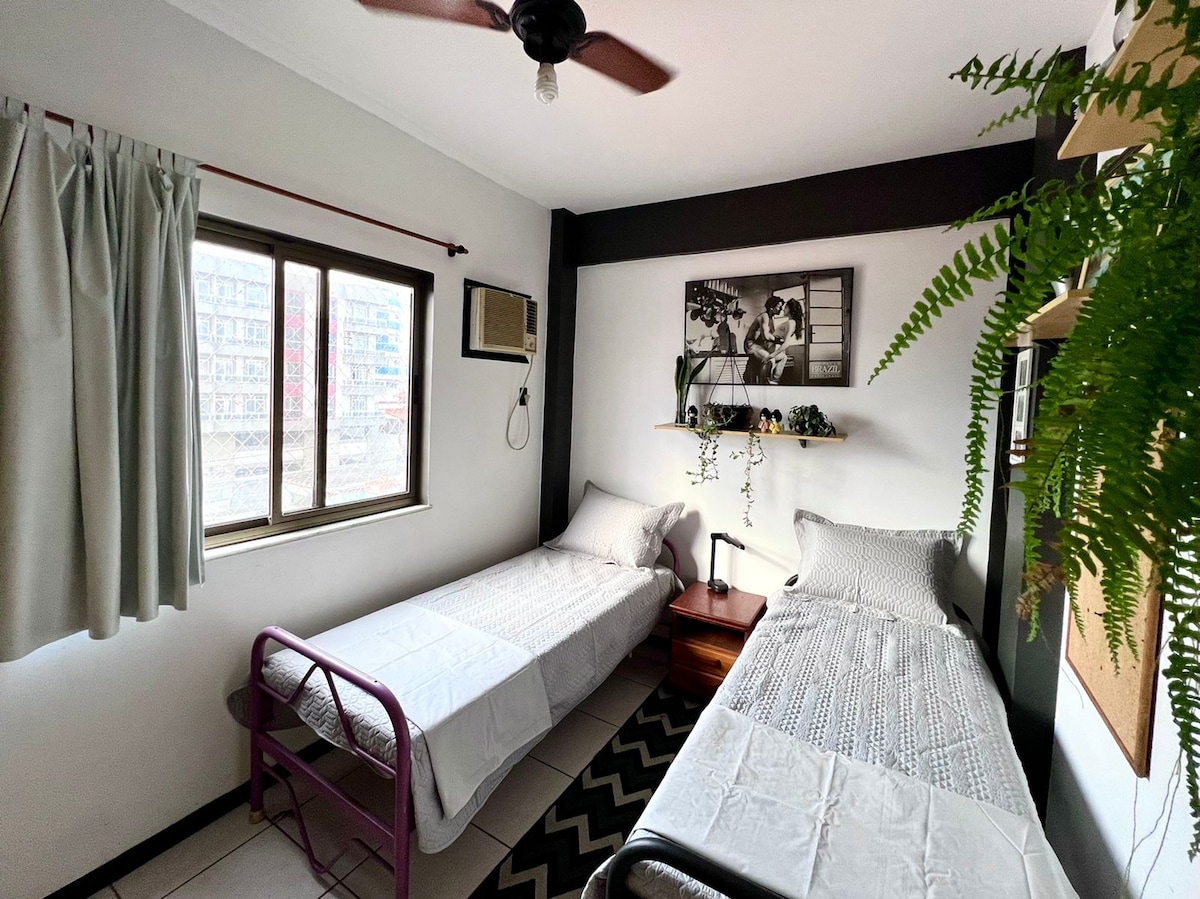 Tágas lakás, hálószoba és nappali légkondicionálóval és nagyon jól szellőző a bájos Passagem környéken. Hangulatos hely, felszerelt konyhával, szervizterülettel és garázzsal az éjszakai tartózkodáshoz. Ágyneműt és fürdőszobai ágyneműt biztosítunk. Csendes és történelmi környék. ✅ 3 percre a Gastronomic Pole-tól. ✅ 4 percre a Praia da Passagemtől. ✅ 4 perc a Taxi Boat-tól az Ilha do Japonês-ig (200 m). ✅ 5 percre a São Benedito templomtól és a Largo São Beneditótól. ✅ 15/20 percre Praia do Fortétól. ✅ 20 percre Cabo Frio belvárosától. MINDEZT GYALOG!