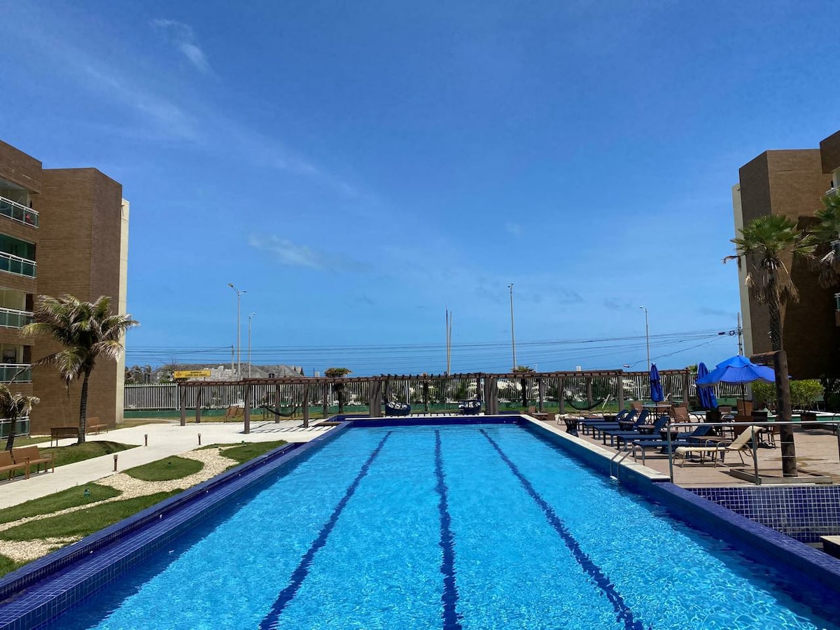 Apartamento muito aconchegante, com vista para a praia mais famosa de Fortaleza, com 1 suíte, sala com sofá cama, cozinha completa e varanda. O apartamento possui ar condicionado na suíte. Comporta confortavelmente até 4 hóspedes. Fica ao lado do hotel Vila galé, na melhor parte da praia do futuro. No condomínio possui salão de jogos, academia, jacuzi, sauna, brinquedoteca e 4 piscinas. OBS: Dia 16/09/2025 começará uma reforma na piscina grande.
