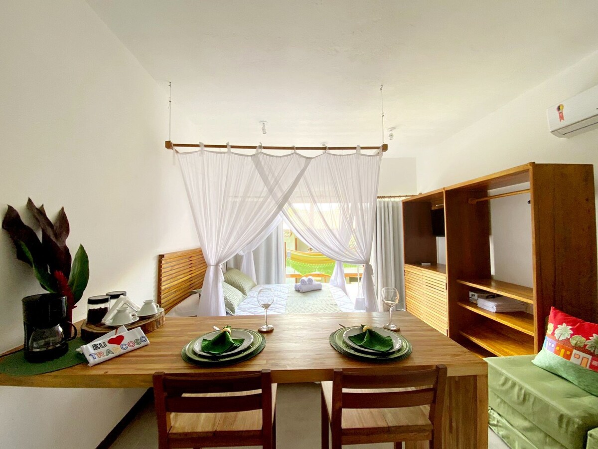 A hatszög alakú Arraia Bungalow a halászfalu rusztikus hangulatát ötvözi a luxussal. A Taipa agyagával készült, amely a legrégebbi brazil falu épületeire emlékeztet, a hely igyekszik lelassítani és átölelni a vendégeit, így érezni lehet a falu békéjét és könnyedségét. A szállás a vendégházunkban található, amely erdős udvarral és egy csapatunkkal rendelkezik, amely készen áll az igényeid kielégítésére.