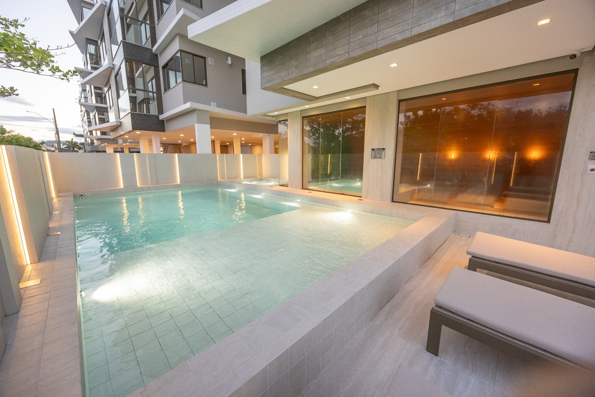 Társasház medencével és játékteremmel, 300 m-re a strandtól