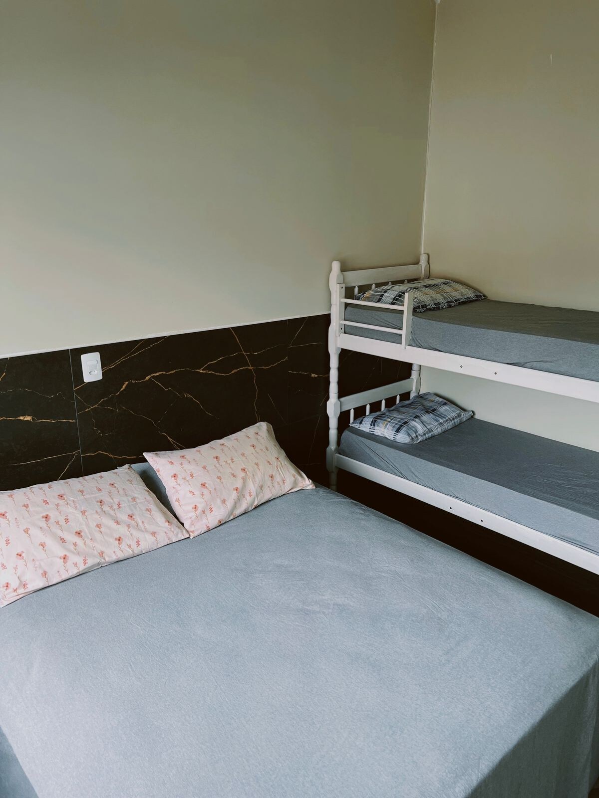 🌊 Csak 40 méterre a tengertől! A ház Praia Grande – São Francisco do Sul területén található, a strand legjobb részén, közel Prainhához, így két strandot is élvezhetsz autó nélkül. A házban 4 hálószoba (2 lakosztály) és egy közös fürdőszoba található, mindegyik légkondicionált. Kényelmes nappali Wi-Fi-vel, okostévével, légkondicionálóval és mennyezeti ventilátorral. Kültéri terület medencével és vízeséssel, grillezővel, elülső pavilon függőággyal, garázs és strandfelszerelések. 🐾 Háziállatokat is szívesen látunk, de további