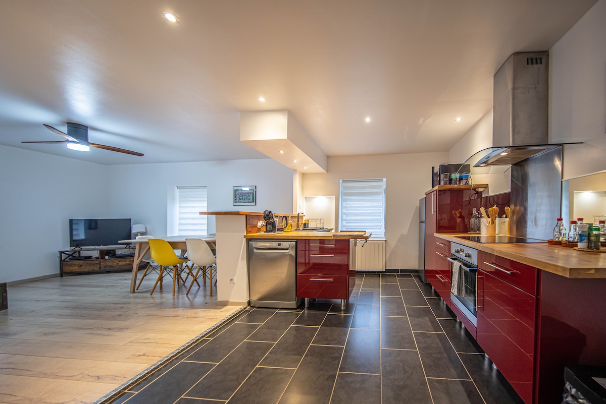 🌿 Pihenj meg ebben a csendes és stílusos otthonban. 60 m2-es kényelem egy bohém, sikkes dekorációban a kert padlóján, saját terasszal és parkolóval. 🌼 🌳Zöld és otthonos környezetben, távol a belváros nyüzsgésétől, de elég közel (15 mm) gyönyörű városunk, Nancy előnyeit élvezheted. 🏰 Ez a világos, teljesen felszerelt egység közvetlen kilátást nyújt az erdős kertre ⚘️ és a bútorozott teraszra. ☀️ Tedd le a táskáidat, és érezd jól magad! Carpe Diem! 😊