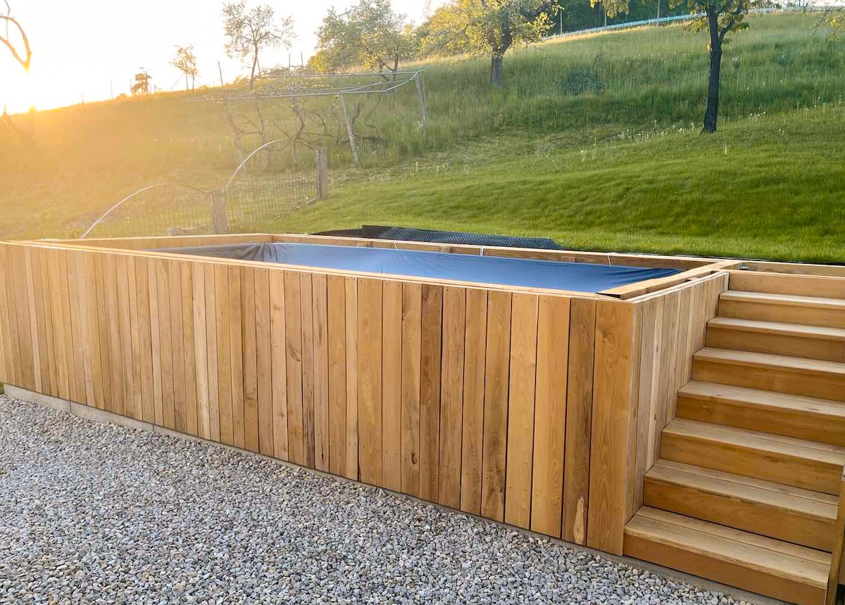 Enjoy a peaceful nature escape in a handmade eco-cottage built from straw bales, clay, and wood. This unique stay blends sustainability with comfort, offering a peaceful retreat for couples, solo travellers, or small families — and yes, pets are welcome too! 🐾 Surrounded by a 30-acre meadow bordering a forest, it offers tranquillity away from the city buzz while still connected to essential amenities. Located in pure nature, perfect for rest or exploring Goričko Park.