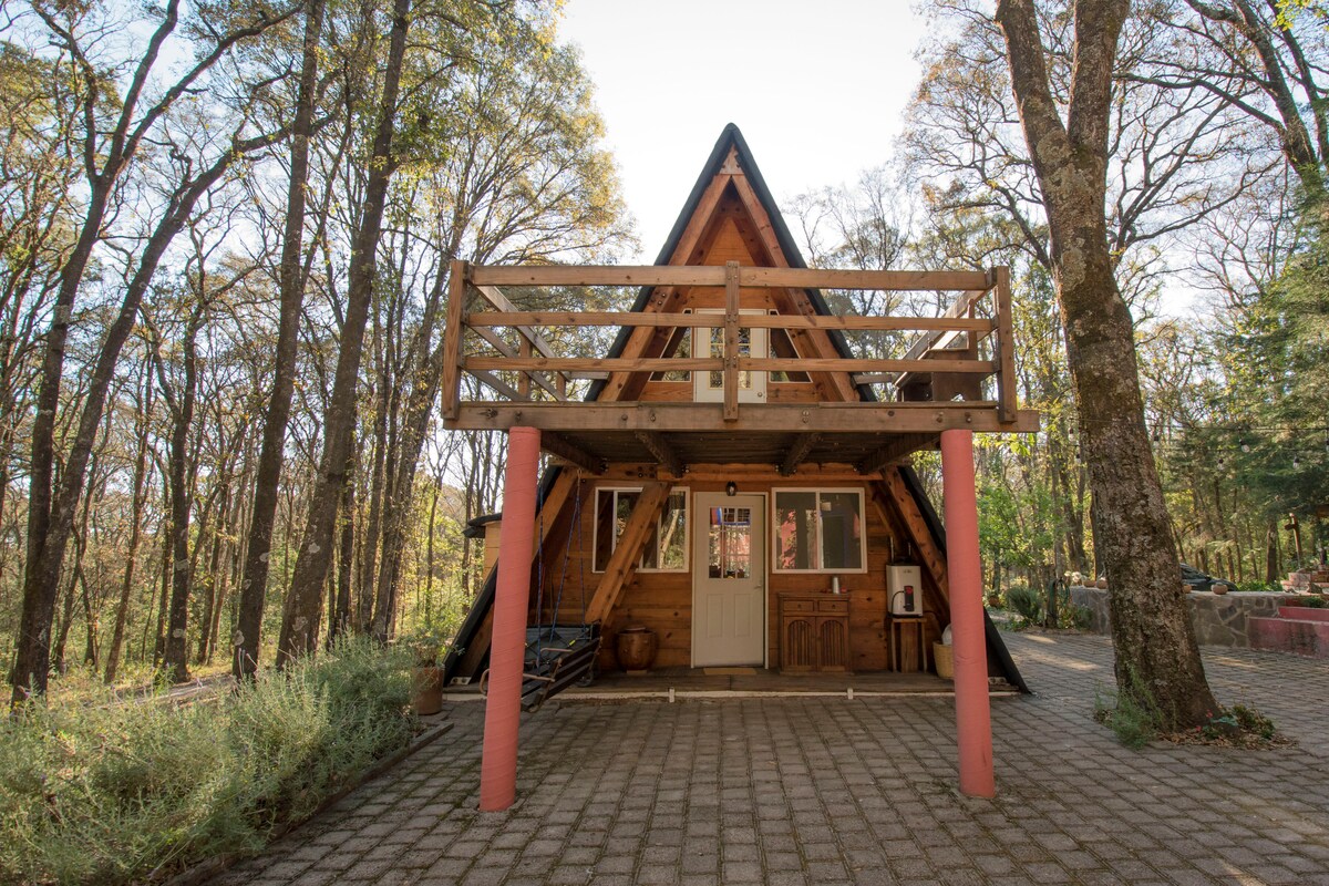 Es una cabaña de construcción ecológica ideal para parejas, o una familia, tiene jardín, en su interior encuentras la acogedora arquitectura de madera y adobe, descubrirás cómo todos los espacios fueron diseñados para descansar y disfrutar la convivencia, está ubicada en un típico barrio mexicano a 20min caminando de la plaza principal. A beautiful cabin made from ecological materials, it has a Garden, In the interior you will find how every space was design for resting