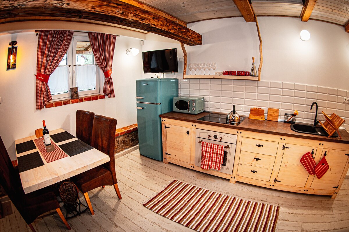Lakás külön bejárattal. 2020-ban újították fel az eredeti melléképületből. Ebben a lakásban agyagvakolat található, a konyhában kamillák fűszernövényekkel, az emeleti hálószobában pedig virágszirmok vannak.