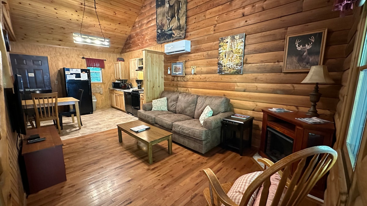 Escape to Honeymoon Lodge, a secluded romantic log cabin in the woods near Bruceton Mills, WV. Perfect for couples, it features a private hot tub, sauna, cozy king bed, 75” TV, and a full kitchen with a high-end espresso machine. Relax on the fireplace loungers or unwind under the stars. Just 25 min to Deep Creek Lake and 30 min to Morgantown—close (ish) to everything yet peacefully private. Ideal for honeymoons, anniversaries, or quiet getaways.