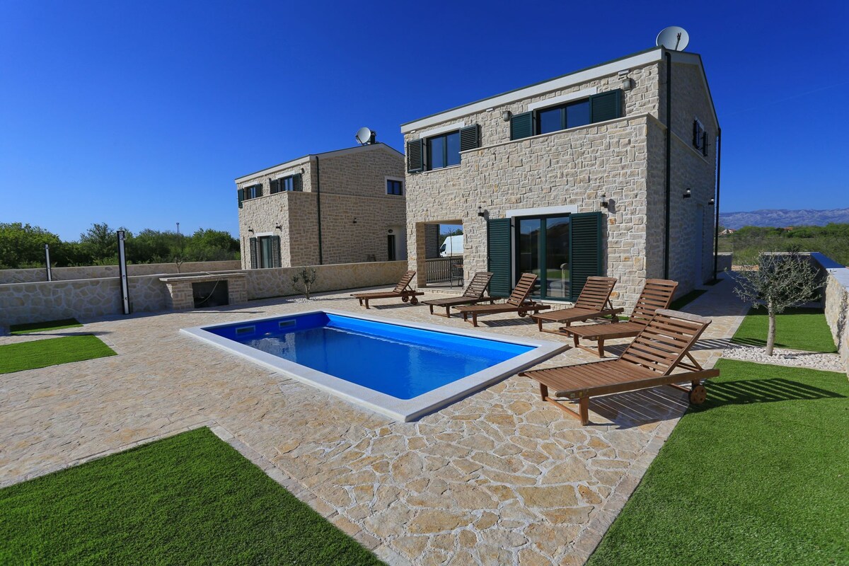 Ez a modern és luxusvilla Privlaka csendes részén található, ahol teljes nyugalomban élvezheted a nyaralásodat. Elég jó helyen, 10 perc sétára a strandtól, és minden szükséges kényelmi szolgáltatás, amely tökéletessé teszi a nyaralásodat (üzlet, étterem, kávézók és strandbárok) ...Privlaka egy gyönyörű félsziget, amelyet hosszú, homokos strandok vesznek körül, és 4 km-re található Nin óvárosától és 20 km-re Zadar városától.