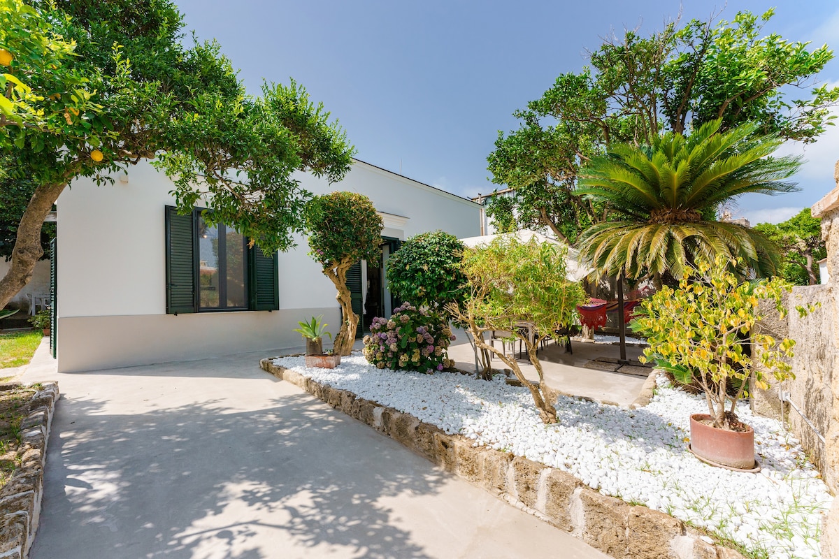 A nemrég felújított ház egy kőhajításnyira található egy kertben a Ciraccio strandtól. A tenger közelsége és a kert nyugalma adja a sziget színeit és illatait. A ház évszázados citromokkal és gyümölcsfákkal körülvett udvarral vár. A földszinten található egy nagy konyha-nappali, egy hálószoba és egy fürdőszoba az első emeleten, kilátással a kertre, ahol a kétágyas hálószoba és a második fürdőszoba található.