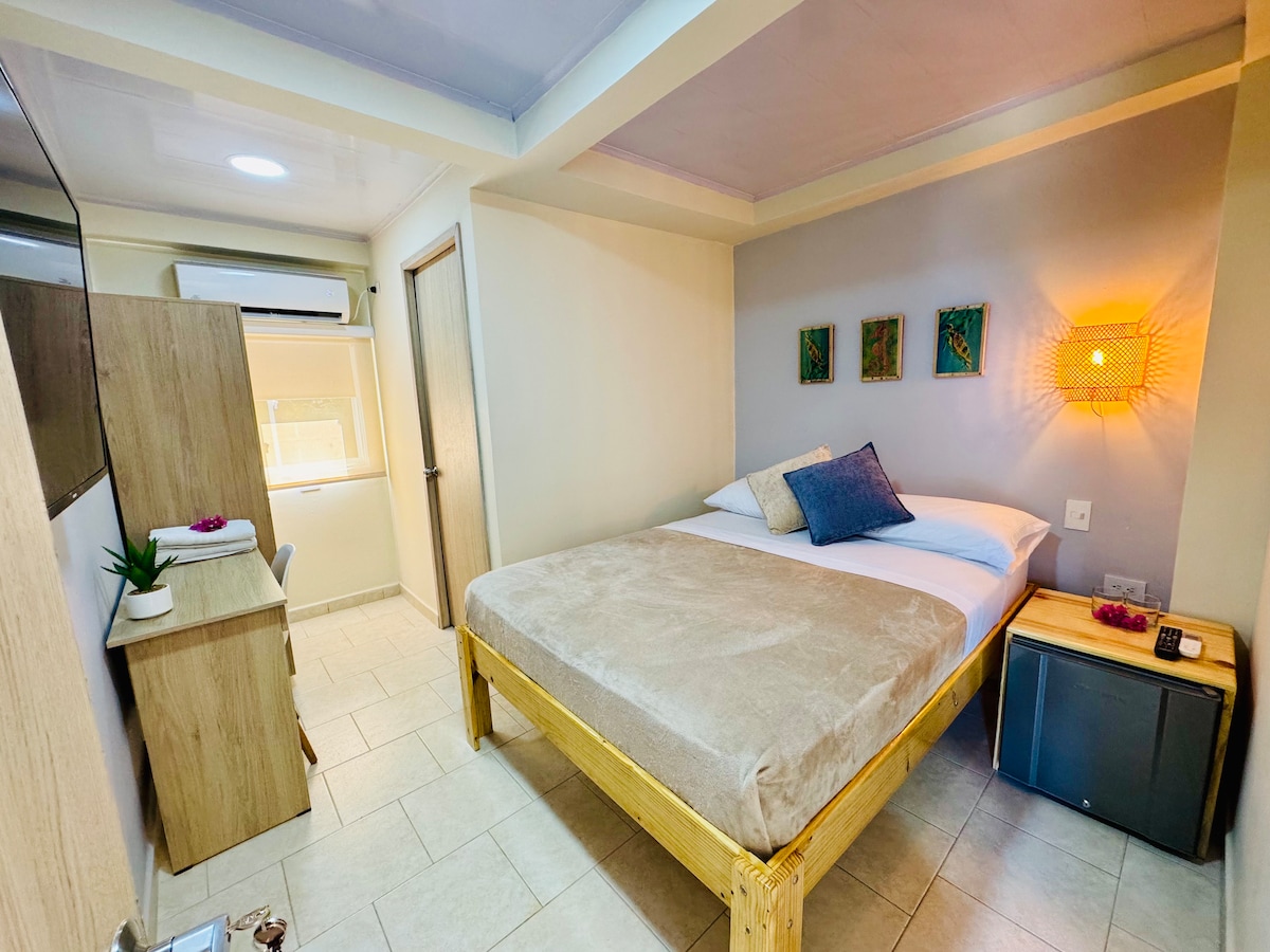 Comfy studio apartment fit for 3 guest Two on bed , one on sofa bed our inn 😊 have an amazing view. were every moment is special. sunrise. mountain views. special private beach. Restaurant. airport at 7 Minutes from the inn. 10 minutes were you can able to walk. Nota: Including Landry mat