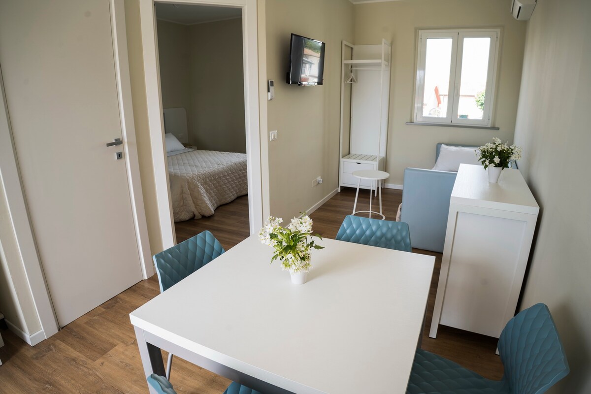 Kényelmes lakások 38 négyzetméteres Kényelmes lakások, amelyek 1-3 fő befogadására alkalmasak. Elérhető stúdióval és kétszobás típussal (az elérhetőségen alapuló megbízás). Mindkettő kétszemélyes ággyal vagy két egyszemélyes ággyal , étkezővel és konyhával, privát fürdőszobával, zuhanyzóval, terasszal vagy terasszal, saját bejárattal rendelkezik.