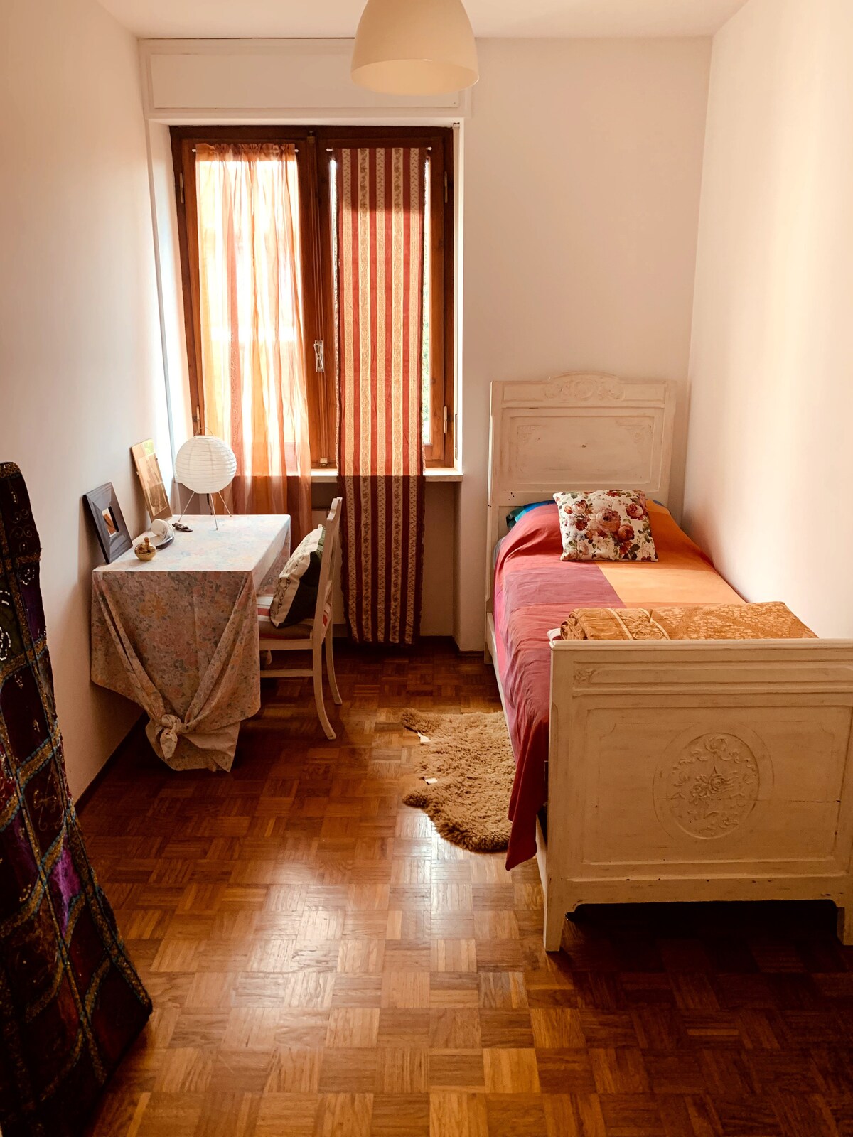 Földszinti szállás, 1-4 fő részére, amely egy nyitott konyhából áll, bejárattal, mosogatógéppel, sütővel, mikrohullámú sütővel, kávéfőzővel, kapszulával. Kétágyas hálószoba. Nappali, amely hálószobaként is használható, mert van benne egy dupla rejtett ágy. Fürdőszoba zuhanyzóval. Mosógép vasalódeszkával és vasalódeszkával. Ingyenes parkolás, 500 méterre Città Studi, 3 km-re a kórháztól, Burcina Park és Biella belvárosa. Csendes társasház.