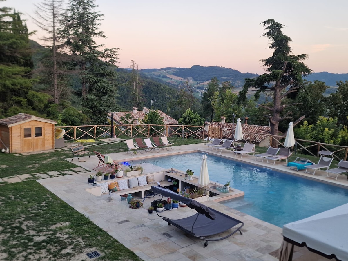 Ez egy tipikus Romagna parasztház az 1900-as évek elején, amely a Romagna dombokon fekszik Forlì és Cesena között. 40 km-re a Romagna Riviérától elmerülsz a zöld és napsütötte dombok közepén, ahol a rendelkezésre álló medencében való pihenés (szezonális nyári megnyitó) mellett számos szabadtéri tevékenységet gyakorolhatsz, beleértve a túrázást, a kerékpározást és még sok minden mást. Grillező és árnyékos terület áll a vendégek rendelkezésére, hogy árnyékos területet biztosítsanak a szabadtéri étkezésekhez.