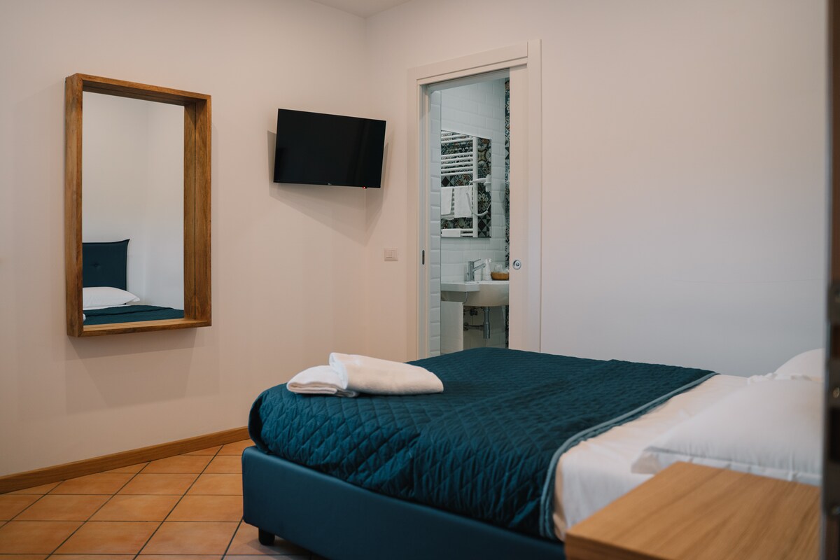 Incantevole Suite vista mare, senti la brezza marina mentre guardi dal tuo balcone privato la bellissima Spiaggia di Scauri, con straordinarie viste frontali sul Golfo di Gaeta. Questa spaziosa suite può ospitare comodamente fino a 5 persone, è formata al suo interno da 2 camere matrimoniali con un unico bagno, ogni camera è arredata con armadio, scrivania e televisione, ampia terrazza privata.