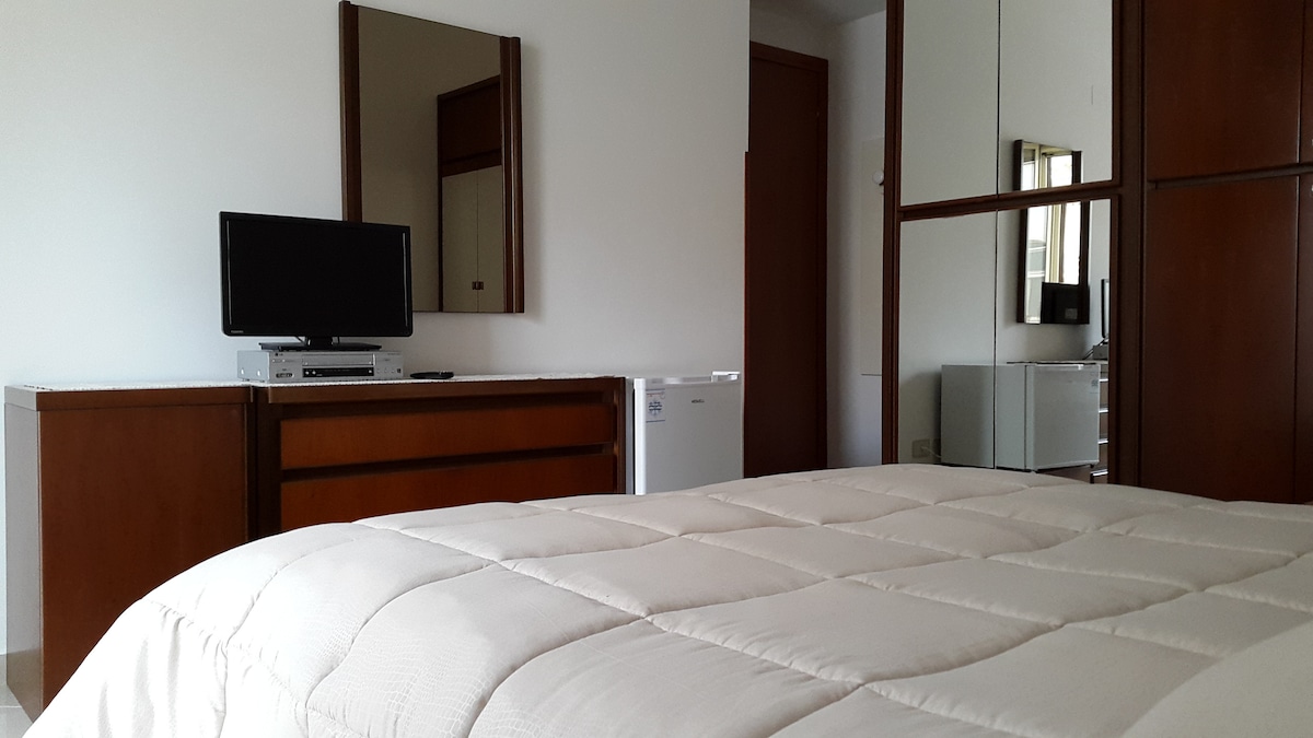 Kétágyas szoba független bejárattal és saját fürdőszobával. Lan- és Wi-Fi-kapcsolat 1 Gb/s-ig. Okostévé Netflix és PrimeVideo megtekintéssel, szekrény, íróasztal, bidé, fürdőszobai piperecikkek,hajszárító és törölközők. Az ingatlan Cassino városának szívében található. A vasútállomástól 600 méterre, a fő tömegközlekedési megállóktól pedig 100 méterre található. Fizetős nyilvános parkolás a főutcákon, ingyenes parkolási lehetőséggel a központ melletti területeken