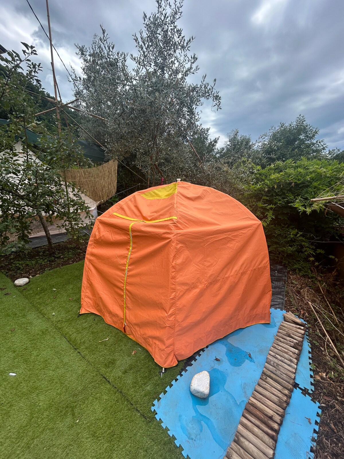 Szállj meg ezen az egyedi helyen, és emlékezz rá örökre. *Élmény egy sátorban minden kényelemmel!* Az ingatlan *felfújható ágyakkal* felszerelt sátrakat kínál a maximális kényelem érdekében. *2 közös fürdőszoba áll rendelkezésre. A medence*, napi belépő csak *3 euróért a medencébe *. Egyedülálló élmény a pihenéshez és a természet élvezetéhez anélkül, hogy feláldoznád a kényelmet!