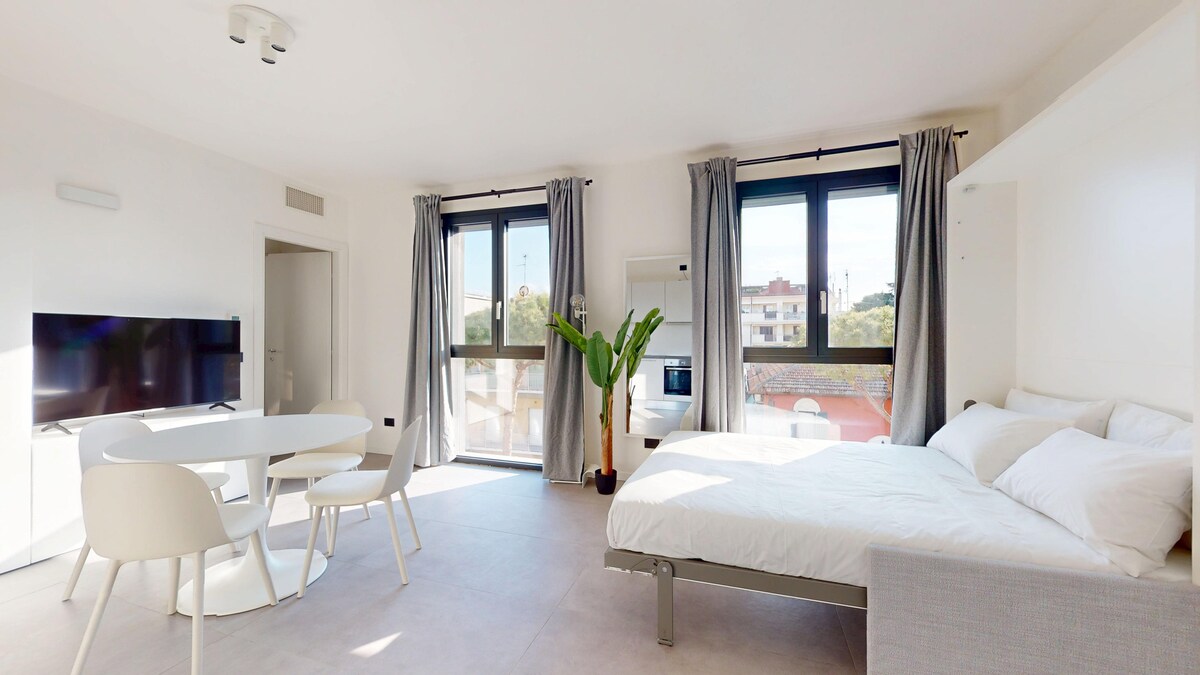 Üdvözlünk elegáns lakásunkban a Marina di Rimini (Dock) negyedben. A San Giuliano Mare szívében található hely ideális választás azok számára, akik kényelmet és kikapcsolódást keresnek néhány lépésre a tengertől. A lakás egyszerű összeköttetést kínál a praktikus és kellemes tartózkodáshoz. Főtávolságok: • Állomás: 800 m • Óváros: 1 km • Anya: 100 m • Rimini dokk: 100 m • Palacongressi: 3 km • Rimini vásár: 4 km • San Marino: 22 km Exkluzív és pihentető szállásért vedd fel velünk a kapcsolatot!
