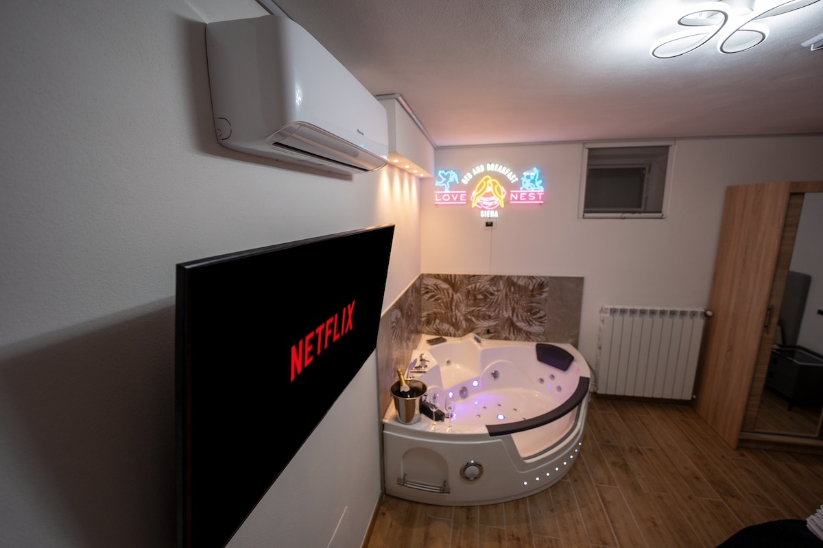 Hagyd, hogy elvarázsoljon a Love Nest, az exkluzív szerelmi búvóhelyed eleganciája és kényelme. A stratégiai elhelyezkedés lehetővé teszi, hogy élvezze a toszkán vidék nyugalmát, miközben csak néhány percre van Siena belvárosának lüktető szívétől. Minden részletre odafigyeltünk, hogy felejthetetlen, luxusra és pihenésre fókuszáló szállást kínálhassunk neked.