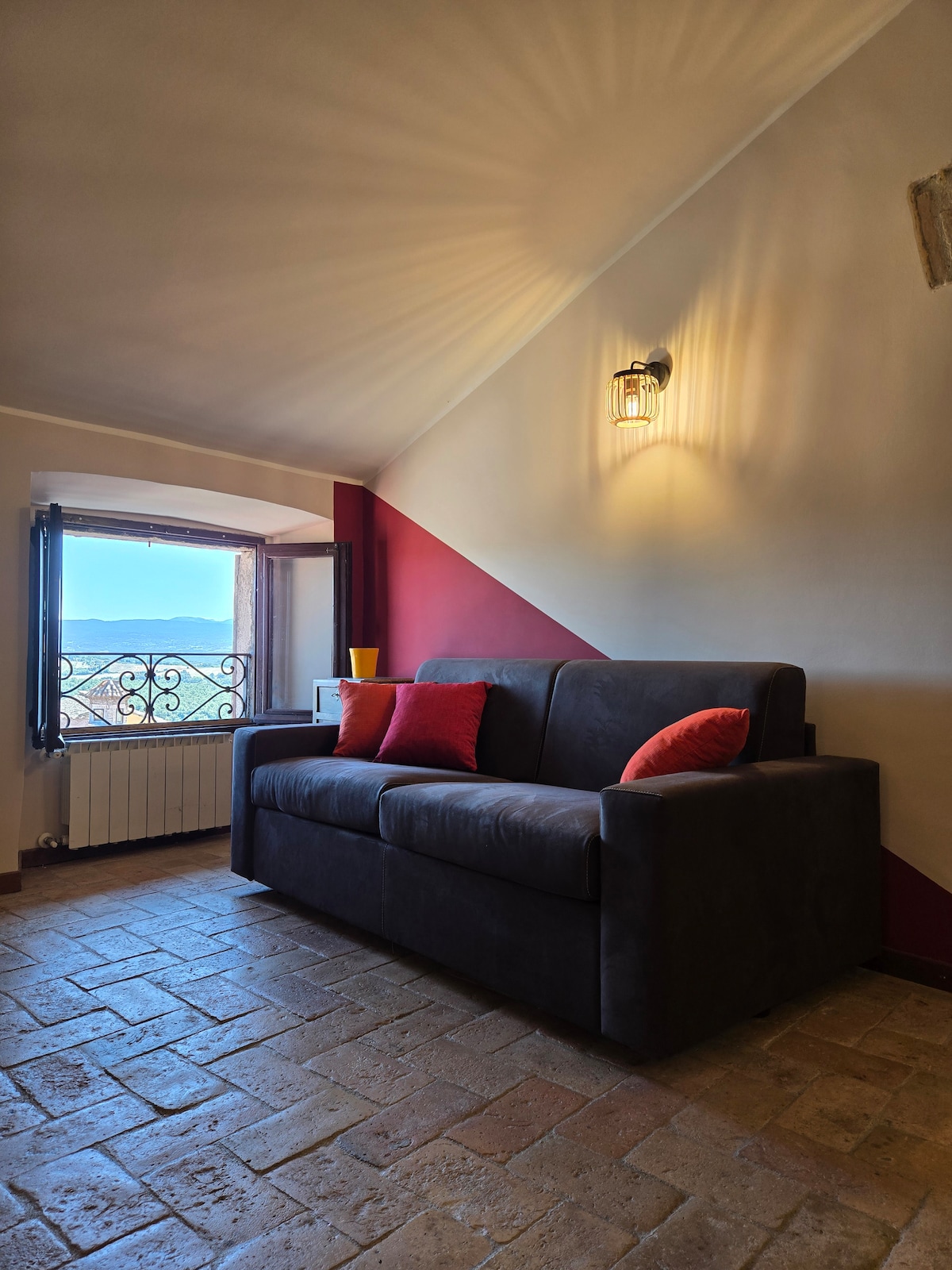 đ Goditi la terrazza con una vista spettacolare sul Castello di Giove e sulla campagna umbra! a 10 min dall'autostrada, Ăš ideale per esplorare cittĂ storiche come Roma, Firenze, il giardino di Bomarzo, narni , Civitavecchia ecc.. Arredato con passione da noi, progettisti dellâinterior design, ogni dettaglio Ăš stato scelto con cura per dedicarvi un soggiorno indimenticabile senza pensieri, in unâatmosfera elegante e accogliente. Vicinissimi a tutti i servizi e a pochi passi dal borgo della cittĂ