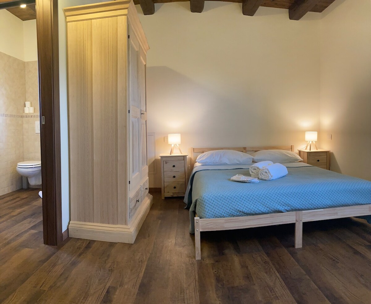 Miniapartman hálószobával, fürdőszobával, nappalival és teakonyhával, fantasztikus panorámával, vidéken elmerülve, de csak pár percre a városközponttól. Ideális természetkedvelőknek, családoknak, sportolóknak. Ne feledd, hogy a parasztház eléréséhez, valamint a kilátás és a vidéki nyugalom élvezetéhez egy földúton kell áthaladni, amely időnként szűk. Az ingatlanban két másik lakóegység is található a vendégek számára. CIR 012133-AGR-00006 CIN IT012133B546CQHW98
