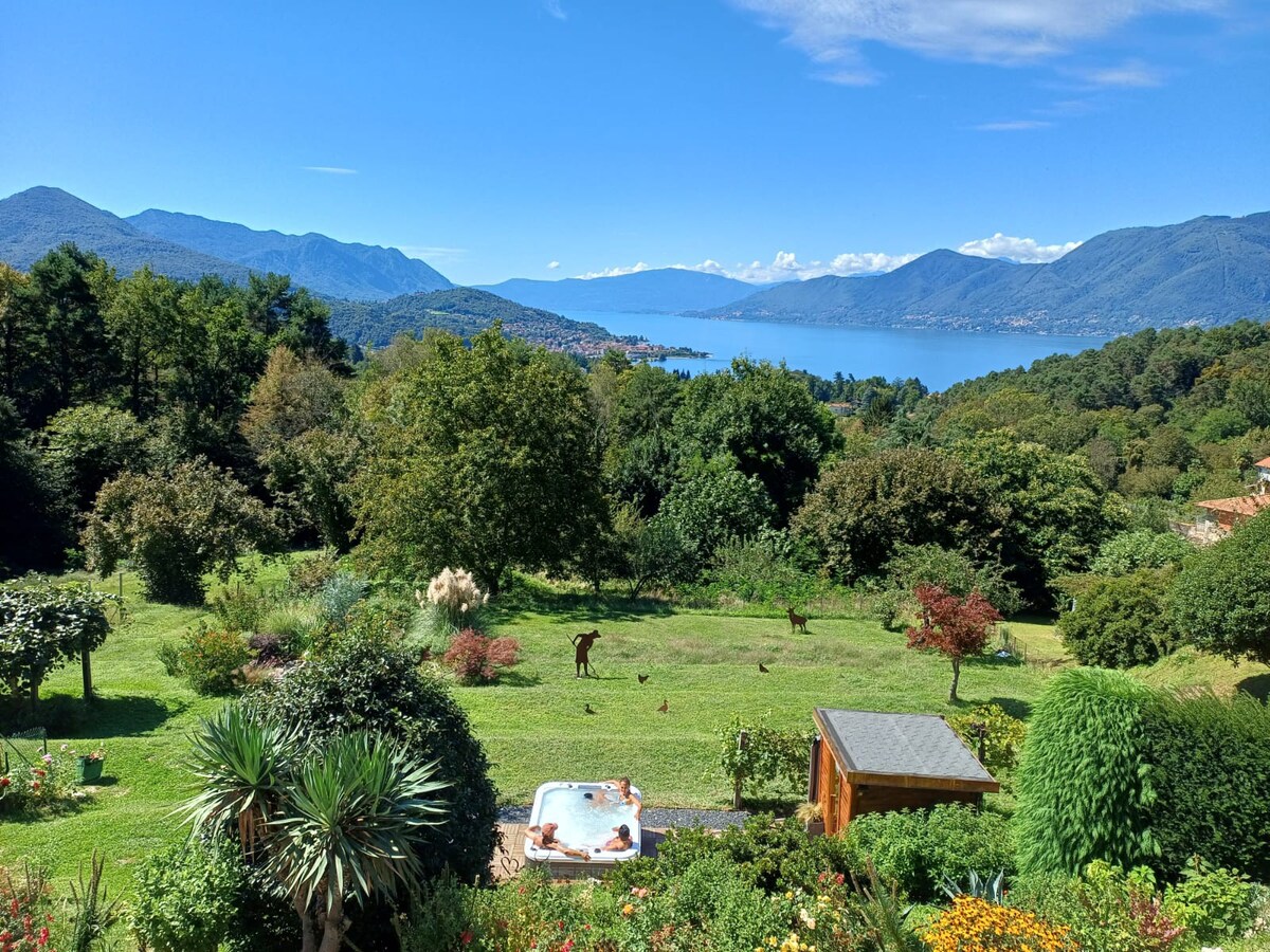 Exkluzív GYÓGYFÜRDŐ és wellness. Modern és fényűző villa gyönyörű kilátással a Maggiore-tóra és a Borromean-szigetekre. A földszinten található, 450 négyzetméteres lakás 2 fő kizárólagos használatra szolgál, amely a következőkből áll: Lakosztály fürdőszobával, nappalival és mini jacuzzival. Edzőterem, GYÓGYFÜRDŐ, mozi, nappali egyéni tevékenységekhez és kert szoláriummal. A szálláshelyen kérésre további szolgáltatásokkal lehet testre szabni Szauna ösvény - Bagno Vapore-Massaggi - Nuvola Experience és még sok más...