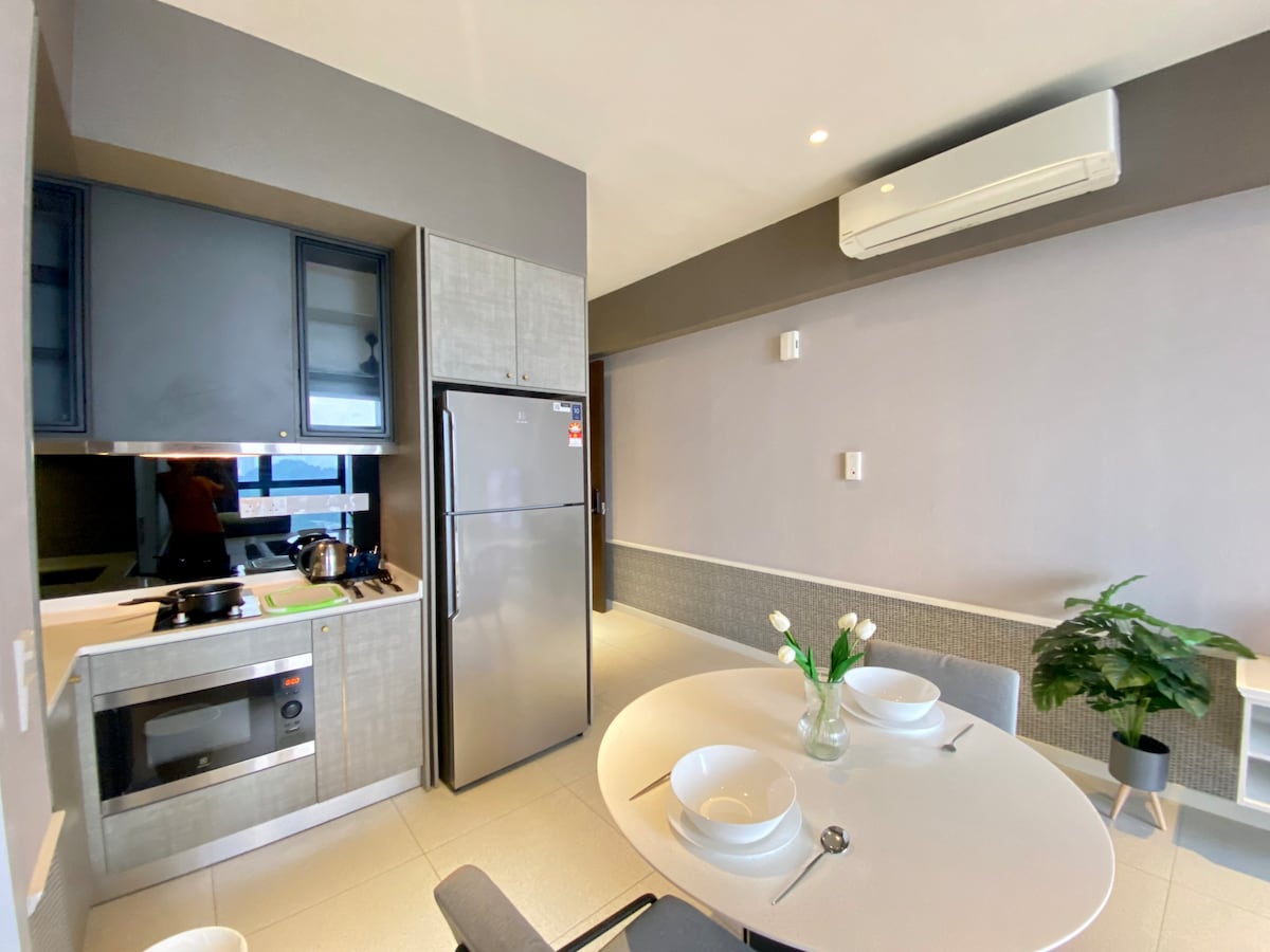 Hangulatos, kényelmes és tágas lakás. Ez az egység a 20. emeleten található, ahonnan lenyűgöző kilátás nyílik a városra és a hegyekre Puchongra, és akár 11 vendéget is fogad. Tökéletes azoknak az üzleti utazóknak, családi nyaralásoknak és szülőknek, akik szeretnének összebarátkozni a kicsikkel. A Puchong szívében található szálláshelyről könnyen elérhetők az éttermek, a mozi, a kisboltok, az LRT, az IOI Mall, a Sunway Pyramid, a Sunway Lagoon, a Pavilion 2 Bukit Jalil, az IOI City Mall és még sok más.