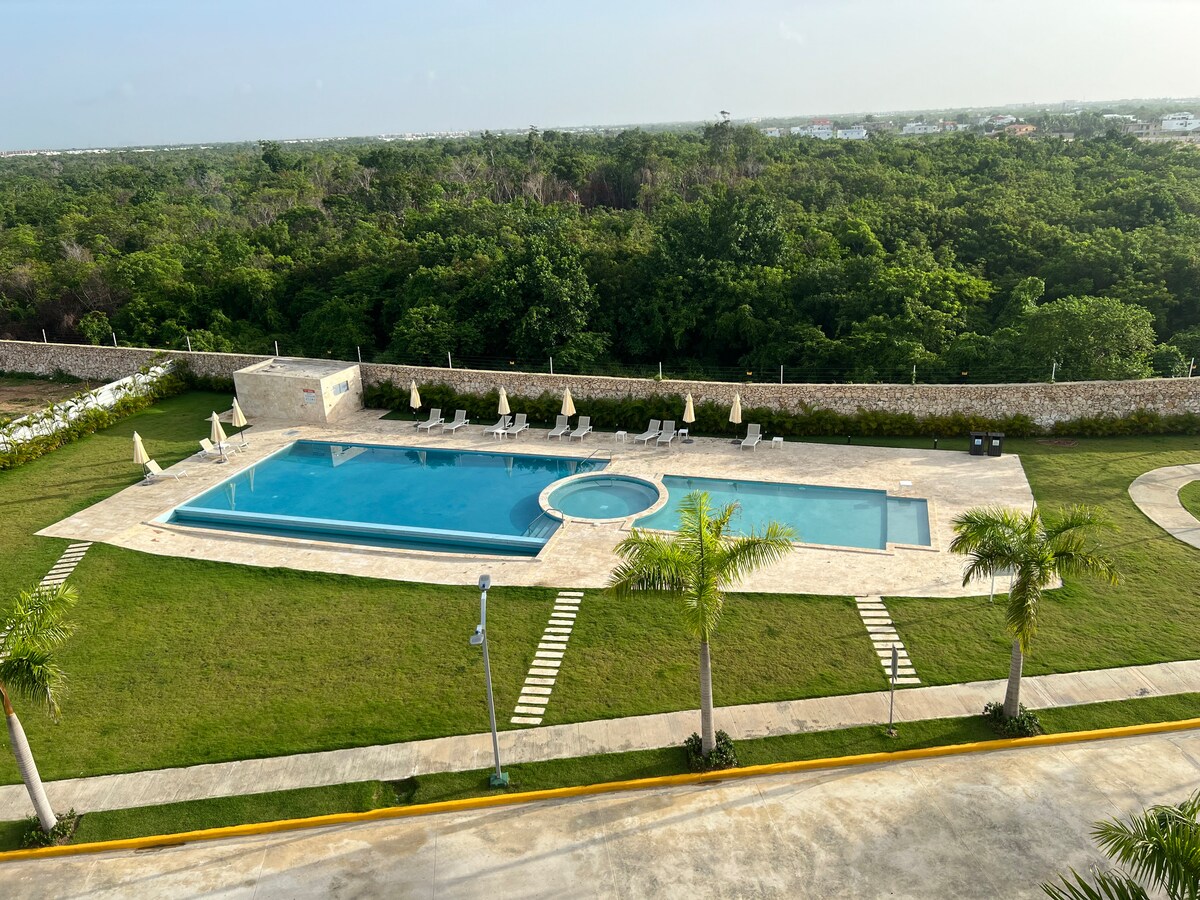 Töltődj fel, lazíts! és érezd magad otthon! Egy gyönyörű, csendes lakást keresel medencével, teljes felszereléssel, hogy élvezhesd a néhány napos családi nyaralást, kiruccanhass a barátaiddal vagy a távmunkával, egy otthonos és modern helyet, amely ideális neked. egy új társasházban található, biztonságos, privát, és egyenlő távolságra van a PuntaCana, a CapCana és a Bavaro legfontosabb szórakozási és pihenőhelyeihez; megfizethető az OLÉ szupermarket, a bankok, az éttermek és az otthoni szolgáltatások számára.