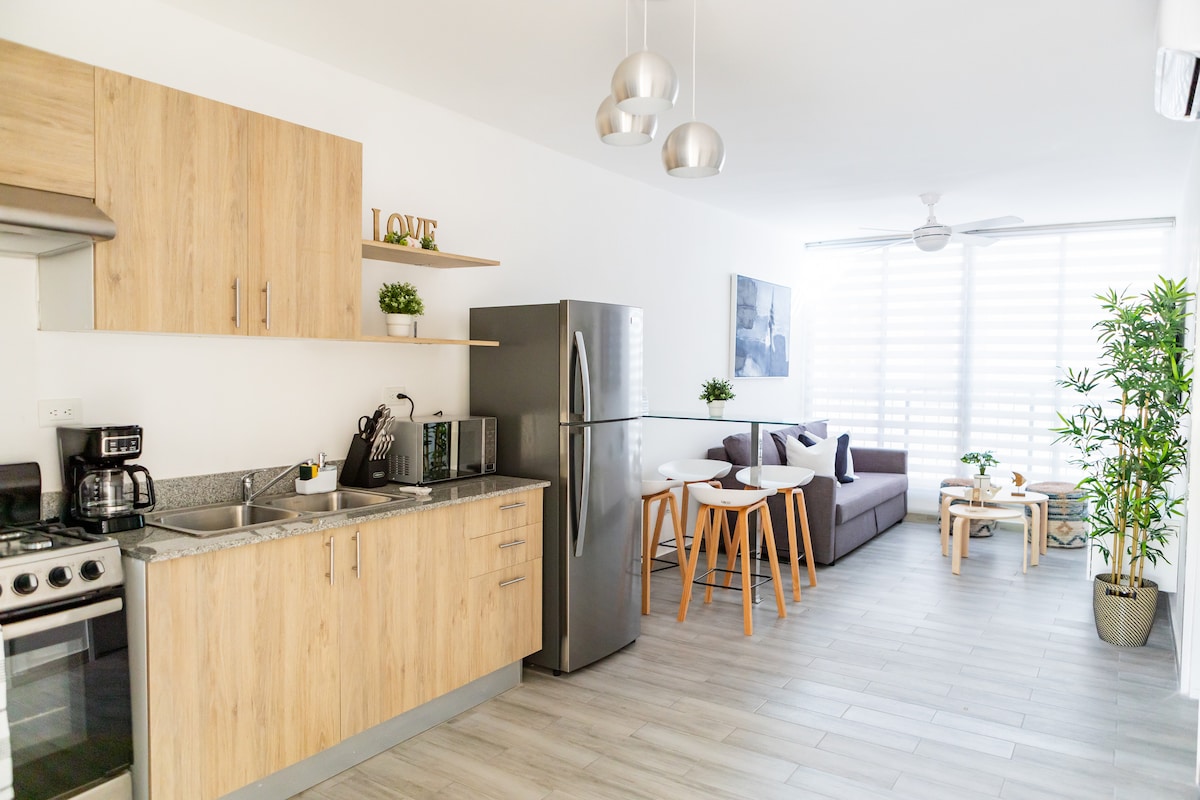 Élvezd a világos és hangulatos szállást Punta Cana szívében. Ez a modern lakás teljesen felszerelt konyhát, friss tereket és a paradicsomi strandokhoz való hozzáférést kínál, amelyek csak néhány percre vannak. Ideális pihenéshez, munkához vagy felfedezéshez. Szupermarketek, éttermek és közlekedés közelében. Tökéletes pároknak, családoknak vagy olyan utazóknak, akik kényelmet és stílust keresnek a Karib-térségben!!