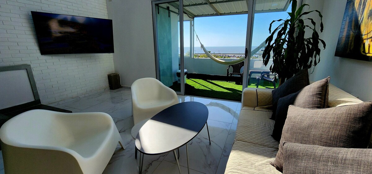 Szörfözz és pihenj ebben az egyedülálló, nyugodt, stílusos tengerparti lakosztályban, kilátással a hátsó dombokra és az óceánra elöl. Kezdd a napot a reggeli napsütéssel, amely a hátsó dombokról fakad. Kóstolj meg egy csésze kolumbiai kávét a Puerto Colombia fő szörfös pihenőjére néző erkélyen. Élvezd a közösségi medencét, miközben találkozol a többi szörfössel. Fejezd be az estét egy naplementével, és lazíts, kilátással a narancssárga naplementékre vagy az új világítótorony - Faro de Puerto Colombia