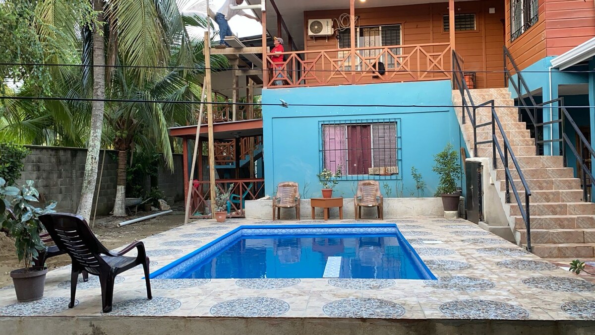 Ez egy kétszintes ház két családnak, minden emelet egy teljes ház, én az első emeleten lakom, és a teljes második emelet a vendégeknek szól, hogy élvezhessék a grillterületet és a medencét. Ez a ház Puerto Cortes érintetlen területén található, három perc sétára a strandtól, ahol jó ételeket kínáló éttermeket találsz, vagy csak sétálhatsz és nézheted a naplementét.