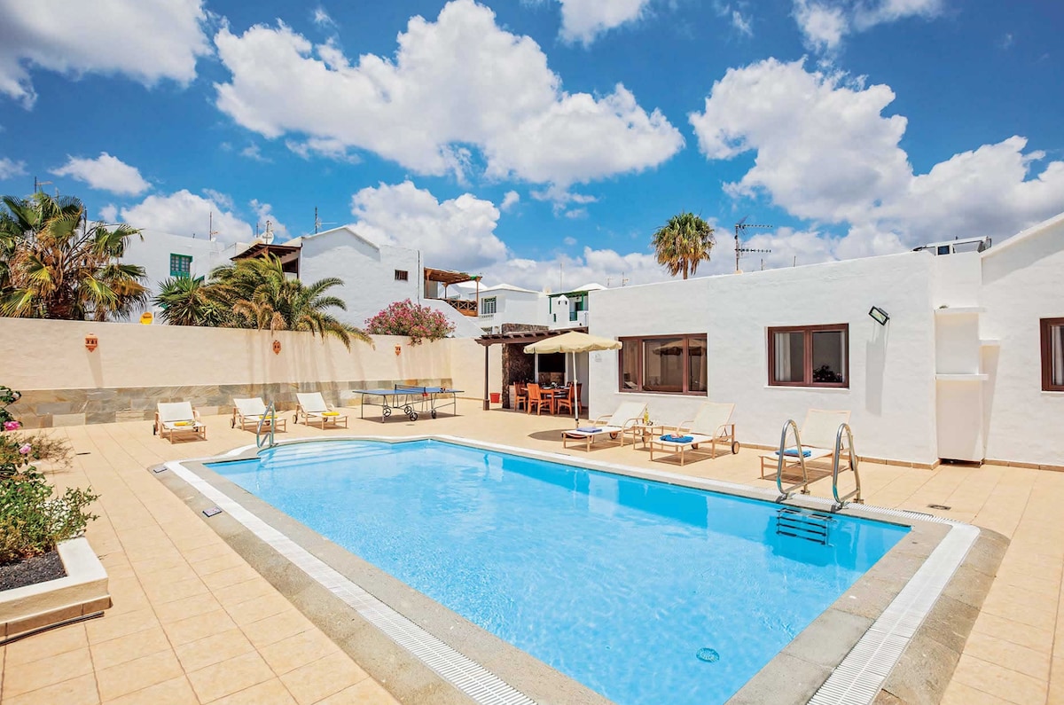 A Casa Moon egy családi ház úszómedencével és napozóterasszal. A repülőtérhez való könnyű hozzáférés és a főút közelsége megkönnyíti a gyönyörű Lanzarote-sziget megismerését. Ideális nagy családok vagy csoportok számára, négy hálószobával, televízióval és légkondicionálóval, három teljes fürdőszobával, nyitott konyhával, étkezővel és óceánra néző nappalival. Játékteremmel, biliárddal és darts-szal, valamint két jármű számára parkolóval. (VV-35-3-0001650)