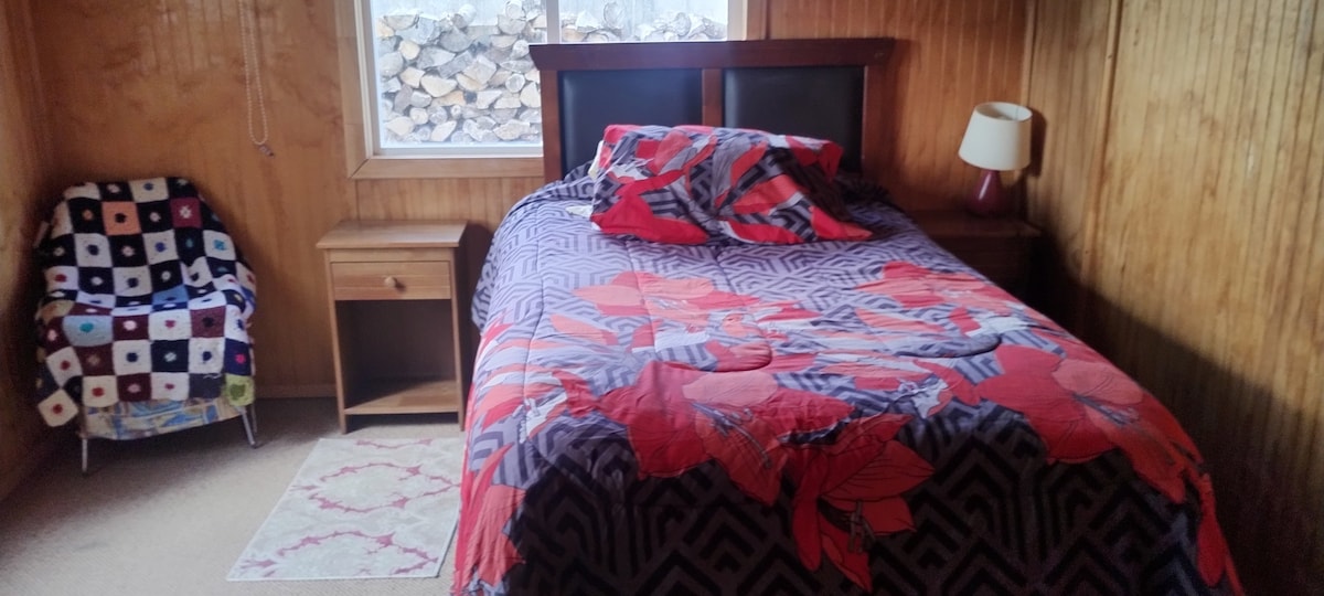 Linda cabaña para 2 personas en excelente barrio residencial, muy tranquilo, silencioso y seguro, con una linda vista a una pequeña quebrada y estero, cerca del lago, Costanera, restaurantes, ideal para tener como punto de partida a todos los lugares turísticos de la zona. Perfecta para una pareja o persona sola. Se puede habilitar espacio y escritorio a quien requiera trabajar en forma remota.