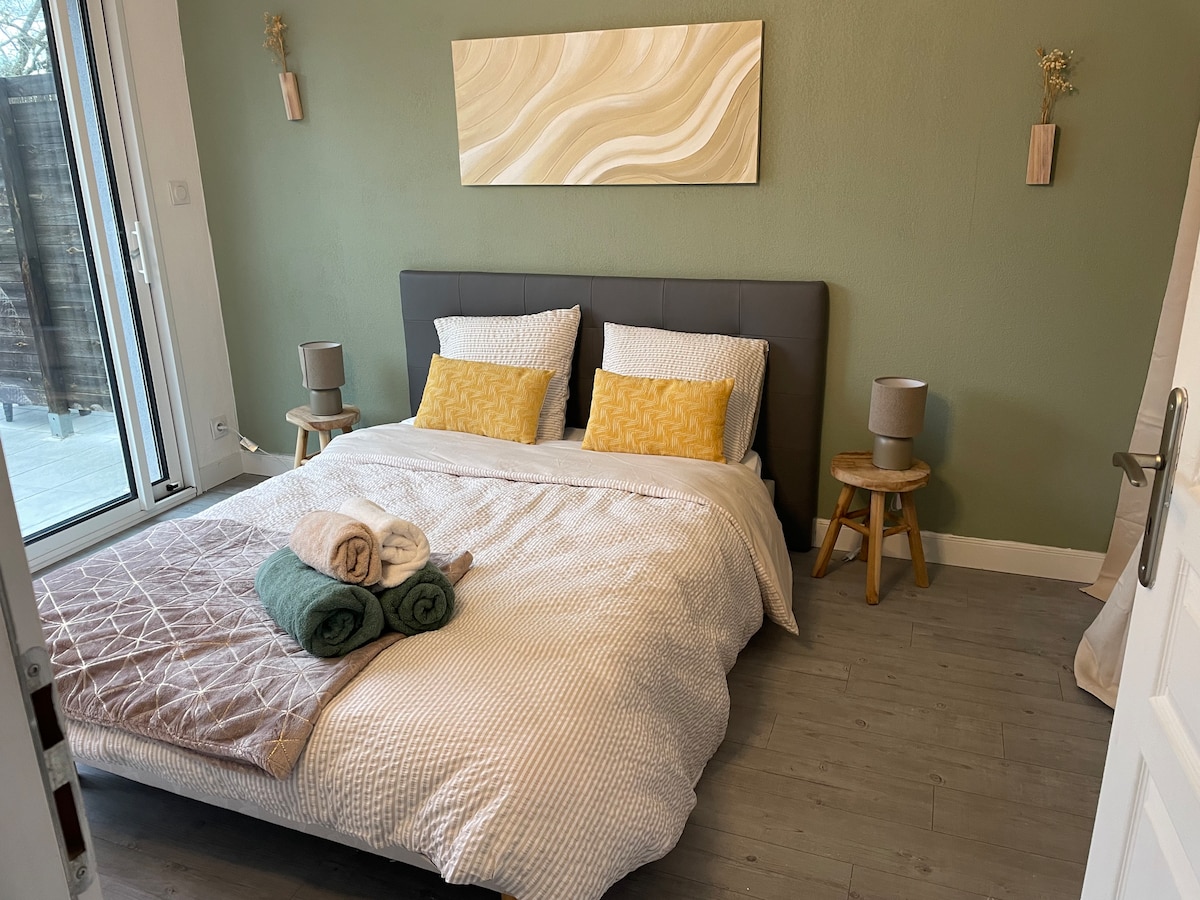 Studio confortable, terrasse, cuisine, salle d'eau