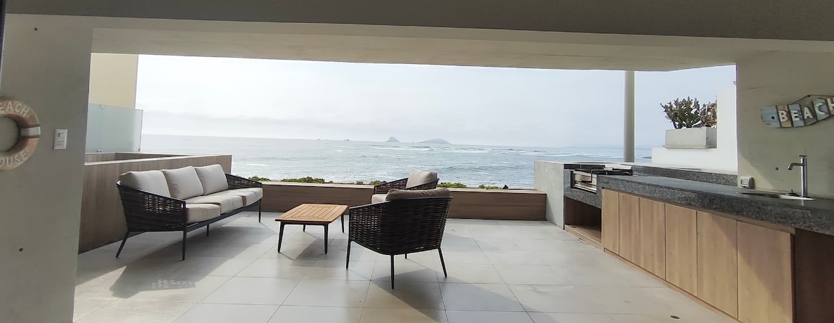 Hermoso y lujoso departamento frente al mar, ubicado a solo 30 minutos de Lima, inicio del Sur Chico y a 8 minutos caminando de la Playa Pulpos. Este acogedor departamento para 6 personas, es ideal para disfrutar de unas vacaciones inolvidables en familia o darte una escapada con tu pareja. Estarás a solo 10 y 15 minutos en auto de los balnearios de moda como Punta Hermosa y San Bartolo, rodeado de centros comerciales (como KM40 y Boulevard de Puntamar) y de los mejores bares y restaurantes.