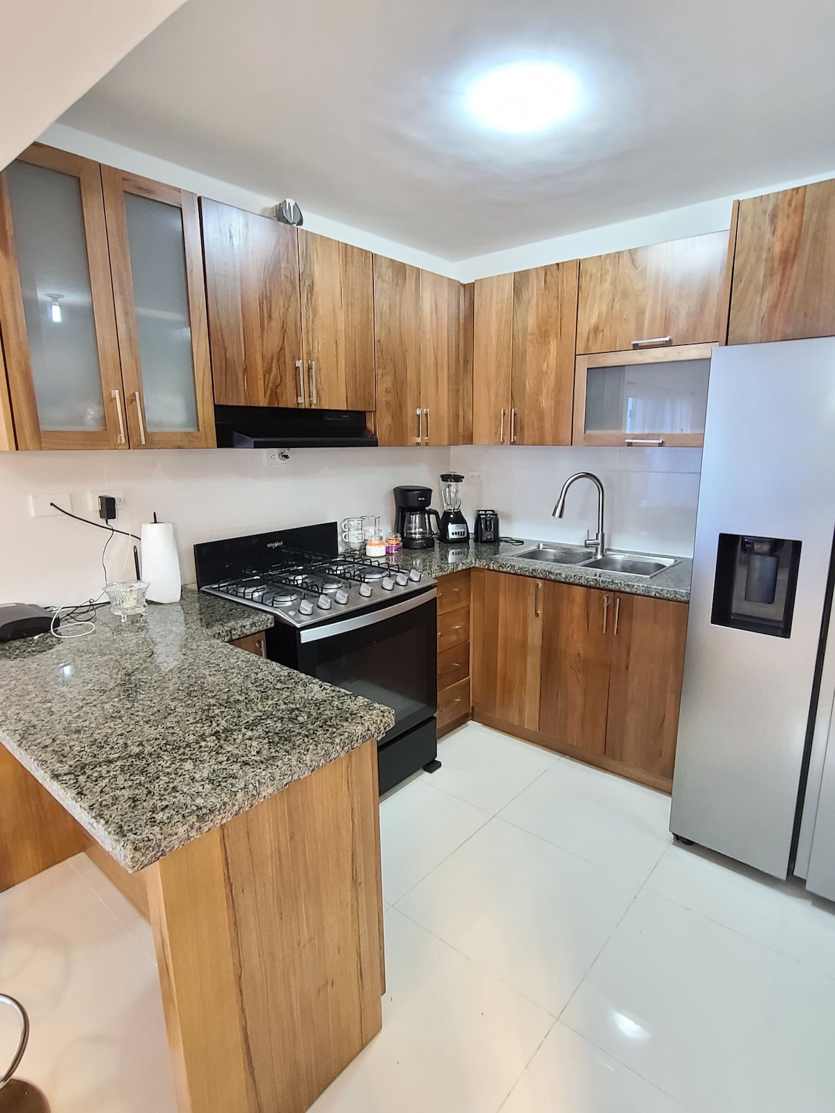 This new apartment is the perfect stay for a family and friends getaway. It’s located 10 minutes from the Santiago Airport, filled of amenities, and fully furnished. There are 3.5 bathrooms, 3 bedrooms with A/C and a guest bedroom with a twin bed, fan and it’s own bathroom. fully equipped kitchen, Two living room,A/C, Two 50” Smart TV, Bluetooth Speakers and two parking spots. You can also enjoy the surroundings of the complex such as, the playground, pool, event room, lake, and sport court.