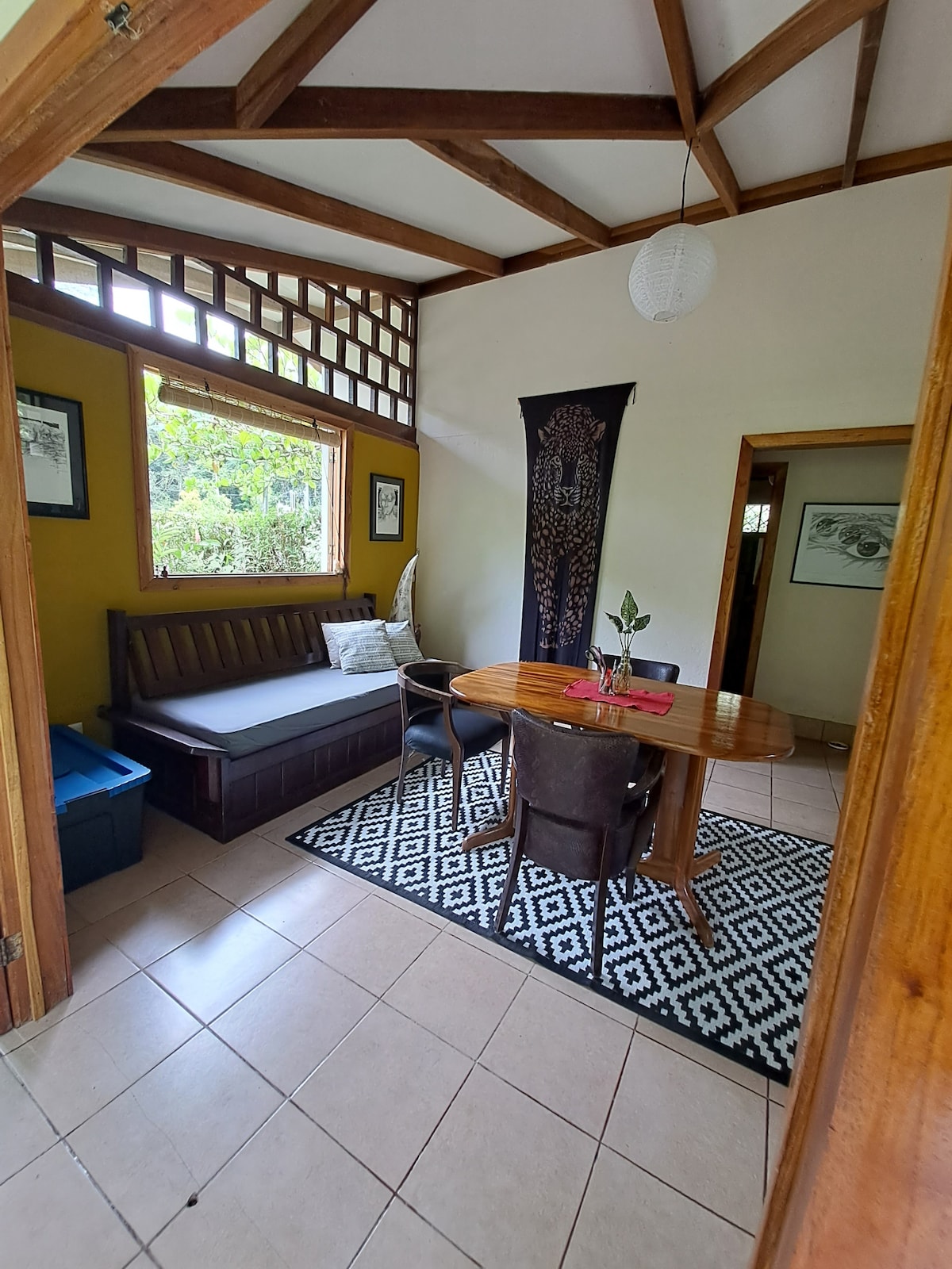 ROMANTIKUS ESŐERDŐ-ÉLMÉNY Az Airbnb egyik legkedveltebb dzsungelotthonaként szerepel! Privát dzsungelüdülő saját merülőmedencével, vadon élő állatok és buja esőerdő körülvéve. A Casa del Bosque a lassú reggelekhez, lustálkodáshoz és a fákban élő üvöltőmajomok édes hangjához készült. Csak néhány percre a karibi strandoktól, de mérföldekre minden sietségtől. Békére, magánszférára és egy lajhár vagy tukán alkalmi látogatására számíthatsz.