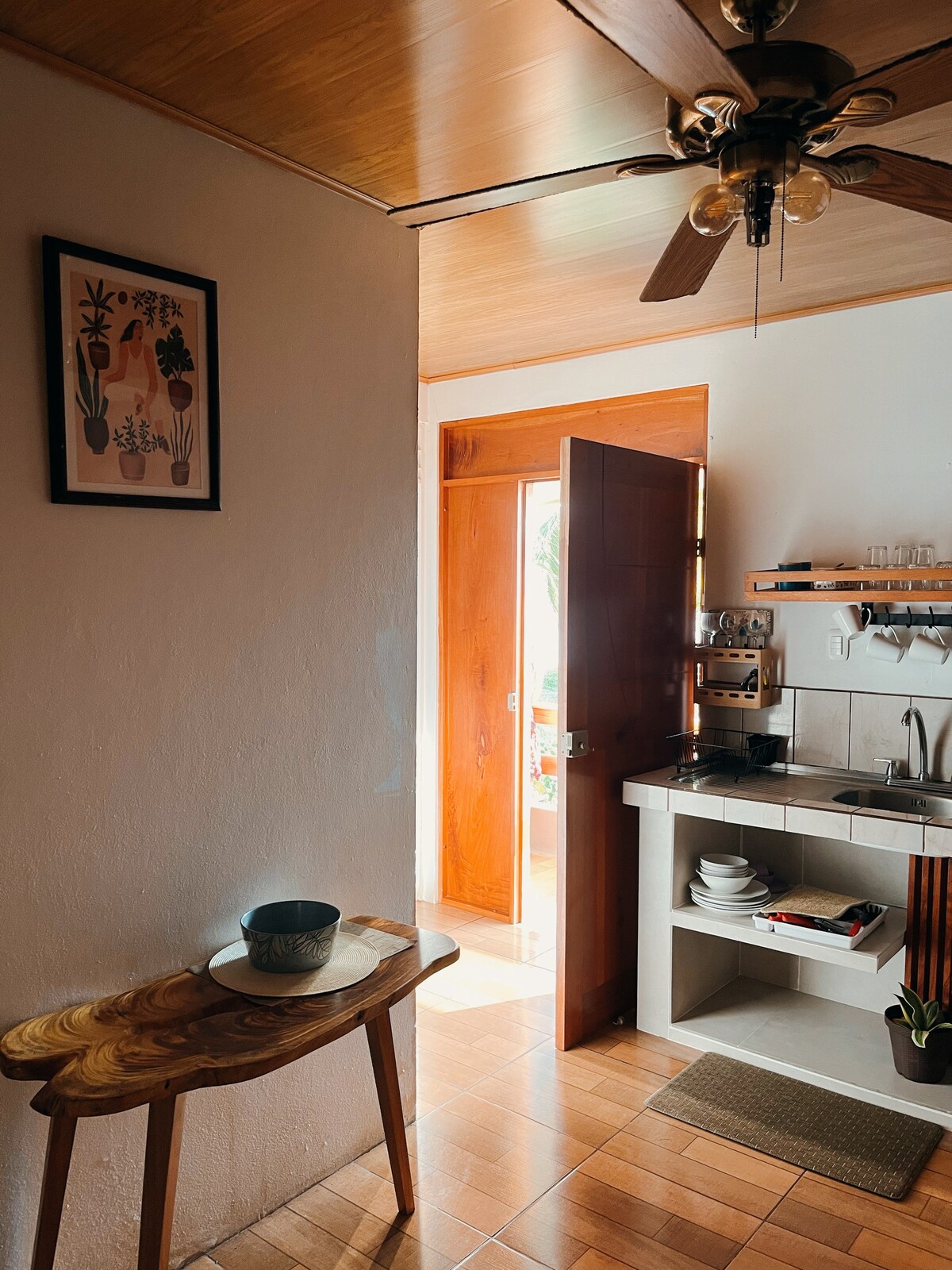 The Nimbu Suite, has an amazing view of the Gulf of Nicoya, sounds of waves from the Pacific Ocean will be your soundtrack while you rest. Beaches in Costa Rica are public. This beach is accesible straight from the backdoor within outdoor shower to rinse off after swimming. The apartment has 2 bedrooms equipped for up to 4 guests, a kitchenette, full bathroom, small dining room and a balcony.