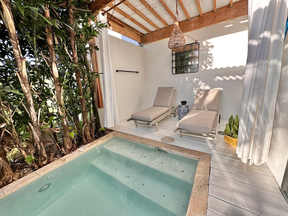 Menekülj el a saját privát pihenőhelyedre Rincón szívében, Puerto Ricóban. Ez az egy hálószobás apartman ötvözi a kényelmet és a pihenést a modern dizájnnal és a trópusi bájjal. Lazíts a saját merülőmedencédben, vagy merülj el a szabadban álló kültéri kádban az égbolt alatt. Tökéletes pároknak vagy egyedül utazóknak, csak néhány percre Rincón híres strandjaitól, szörfös helyeitől és nyüzsgő éttermeitől. Akár kalandot, akár kikapcsolódást keresel, ez a rejtett hely tökéletes egyensúlyt teremt a kettő között.