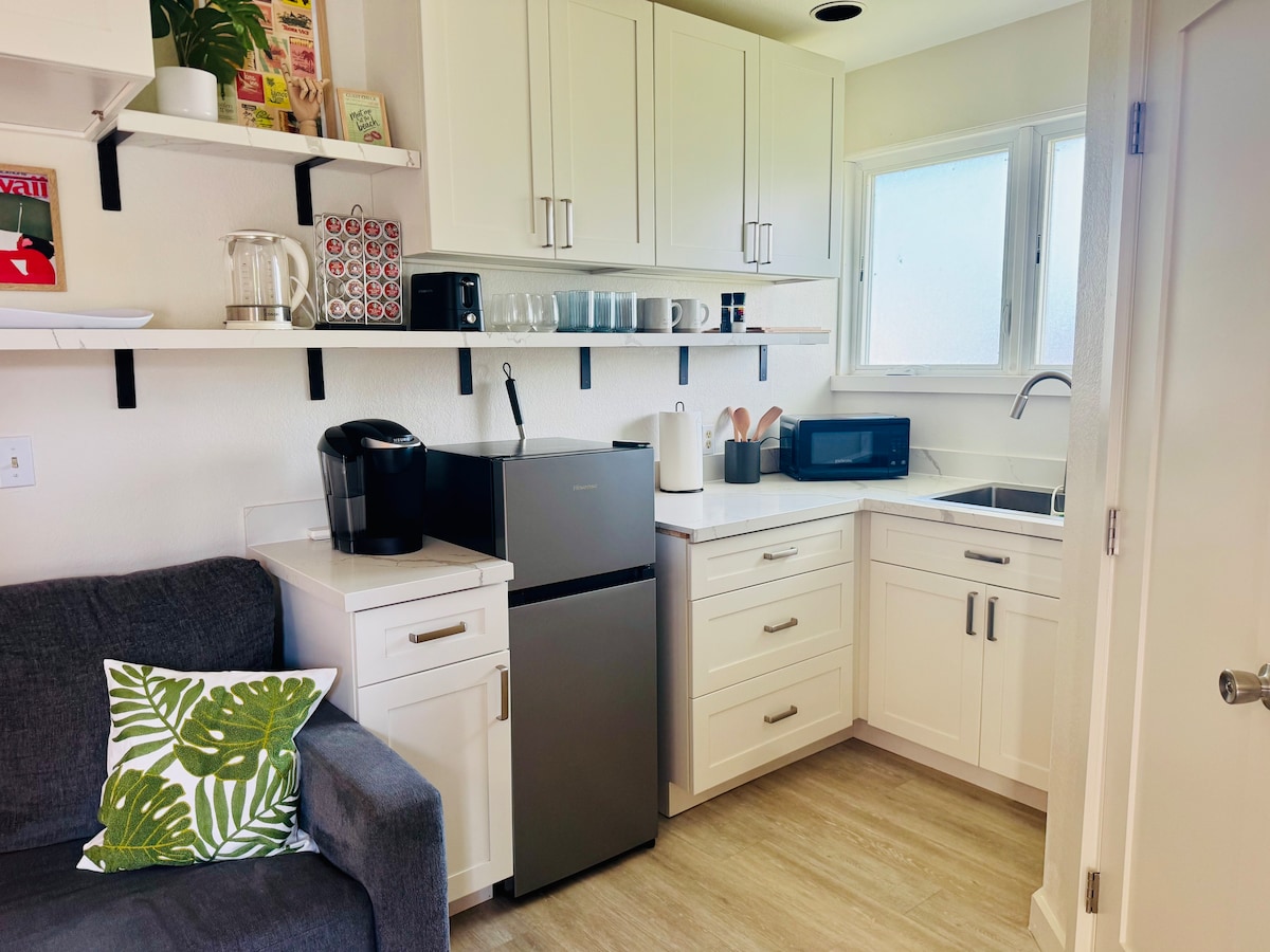 Licensed, legal (NUC short term rental #1990/NUC-1819, Tax map key: 43073024) *not impacted by Honolulu ordinances banning short term **RECENTLY RENOVATED BATHROOM AND KITCHENETTE (at end of June 2023)** Peaceful retreat in desirable Kailua! An easy 8-10 minute walk to Kailua Beach. Airbnb “Guest Favorite” awardee! Sister Unit: Kailua Pineapple Studio. Walk to Beach! PERMITTED. Property managed by Kupono Services.