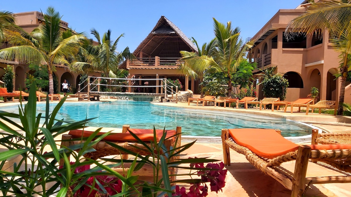 Ingatlanunk ideális oázis az afrikai nyaraláshoz, amely Kiwengwa északi részén található A Kiwengwa varázslatos strandjától mindössze 150 méterre található helyünk teljesen felszerelt apartmanokat kínál trópusi kertekkel és csodálatos medencével körülvéve - Az apartmanok légkondicionálóval és kanapéval ellátott ülősarokkal, étkezővel és felszerelt konyhával rendelkeznek. - Az ár tartalmazza a humbrellákkal és napozóágyakkal felszerelt privát strandunkat - Reggeli kiszolgálása: 10 USD személyenként