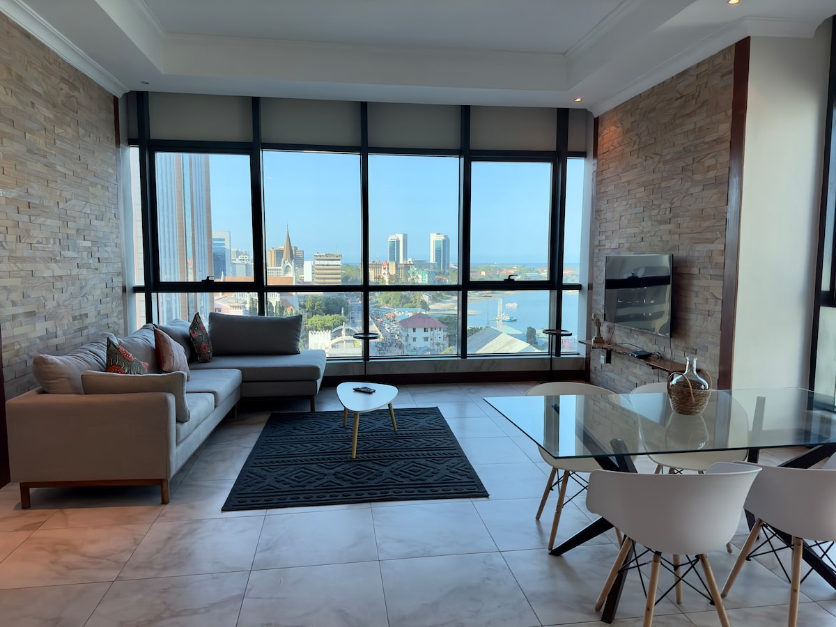 TELJES LAKÁS Élvezd a naplementét és a városra nyíló kilátást, miközben a nappaliban pihensz! Nézd meg Dar es Salaam nyugtató városi fényeit! Az apartman jellemzői: Erkély lenyűgöző kilátással 3 hálószoba A padlótól a mennyezetig érő üvegajtók és saját erkélyek Beépített szekrények Nappali és étkezőterület Teljesen felszerelt konyha saját szekrényekkel Fürdőszobák fürdőkáddal Mosókonyha Fenntartott parkolás 24 órás biztonság Teljes körű szolgáltatásokat kínál Szolgáltatások a közelben Úszómedence
