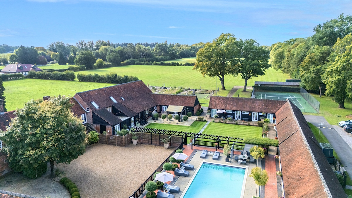Francia tölgyből készült, elragadó, különálló pajtás ház egy békés, elzárt vidéki birtokon. Fényűzően berendezett, teljes felszereltséggel egy rövid szünethez vagy hosszabb tartózkodáshoz. Légkondicionáló. Ingyenes töltőállomás elektromos járműveknek. Sok közeli gyalogút. A helyi üzletek mindössze 10 perces sétára vannak. Gasztropubok, éttermek és független üzletek könnyen megközelíthető sétatávolságon belül. Rövid autóútra az M25-ös autópályától (J11). Gyorsvasúti összeköttetés London és Woking között. LMBTQ+ barát. Barátságos spániel és sziámi macska a helyszínen.